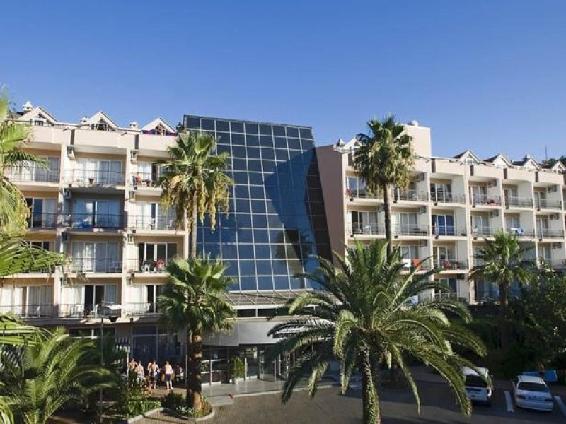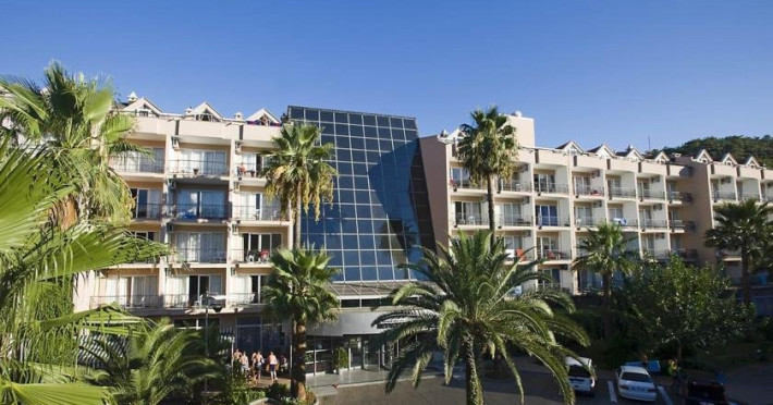 Descriere: Kervansaray Marmaris este locul perfect pentru familiile si grupurile de prieteni care doresc o vacanta plina de actiune, cu soare, mare si nisip. Localizare: Hotelul se afla in centrul orasului Marmaris, la 2km de Aqua Dream Water Park, Atlantis Water Park si Karacan. Centrul comercial Mallmarine si Piata Marmaris se afla la 3km distanta. Dotari camere: Camerele curate si spatioase ofera aer conditionat si toate facilitatile moderne de care aveti nevoie. Facilitati hotel: La scurta distanta veti gasi plaje care ofera o varietate de sporturi nautice. Zilnic se organizeaza croaziere pe mare, prin care puteti vizita golfurile de pe Coasta de Turcoaz, tarmul muntos, ruine de orase antice si o pestera (cu acces exclusiv de pe mare) din jurul statiunii Marmaris. De asemenea, orasul ofera o gama extinsa de restaurante, baruri si o multime de magazine cu chilipiruri fabuloase. Kervansaray Marmaris are o piscina mare, fiind un loc ideal de distractie pentru toata lumea. Va puteti mentine in forma cu aerobic, step si gimnastica in apa. Puteti juca tenis de masa, tenis, volei si baschet. In fiecare dimineata sunt disponibile cursuri de aerobic, step aerobic si gimnastica in apa. Parintii nu trebuie sa-si faca griji, pentru copii pentru ca Kervansaray Marmaris ofera o multime de activitati care ii vor mentine ocupati. In fiecare zi se organizeaza mini discoteci, sesiuni de pictura si jocuri pentru copii. Pentru distractia oaspetilor, seara sunt organizate spectacole de comedie si de revista.