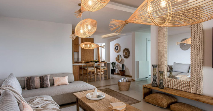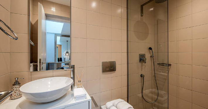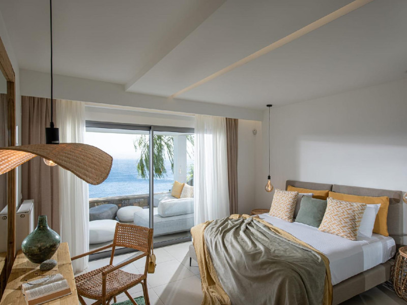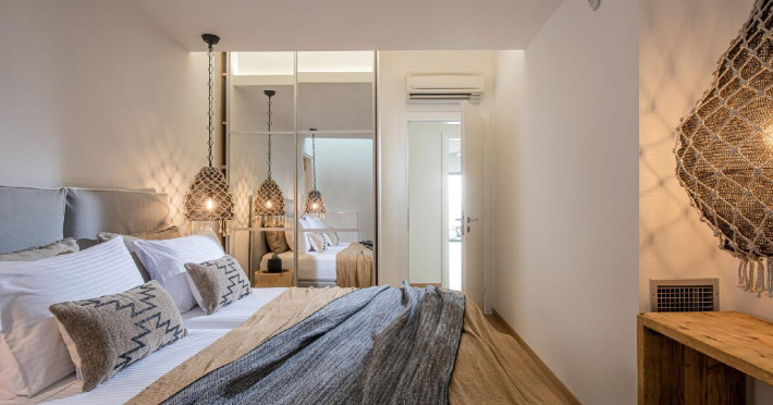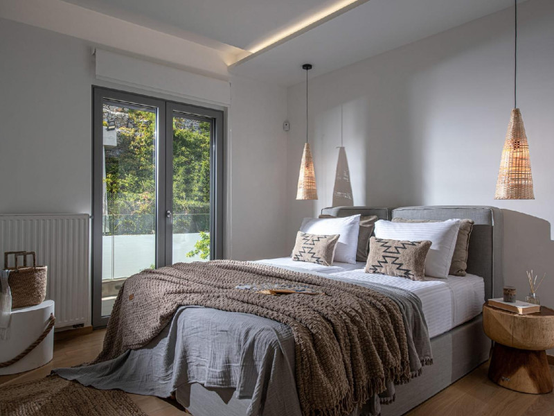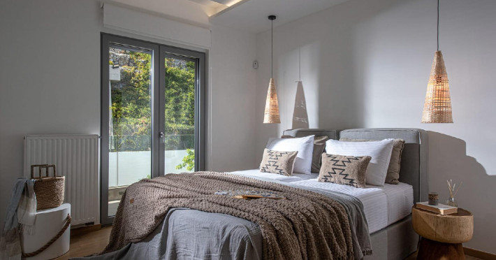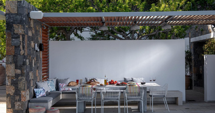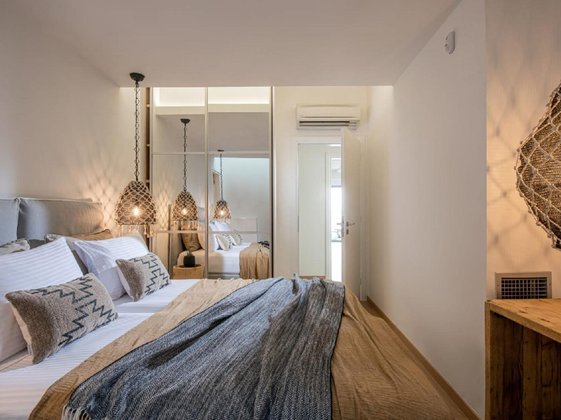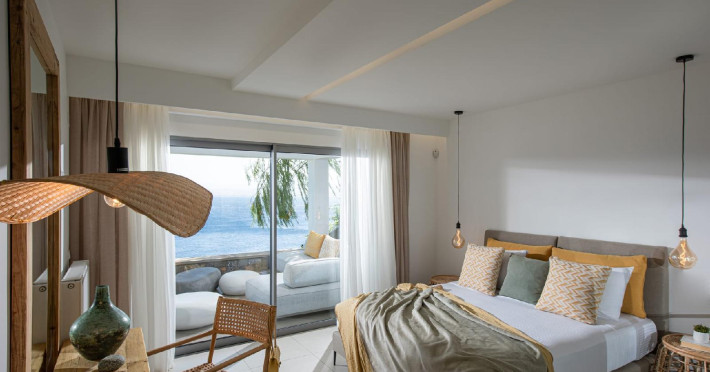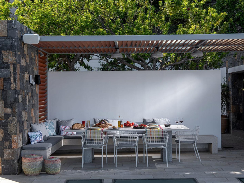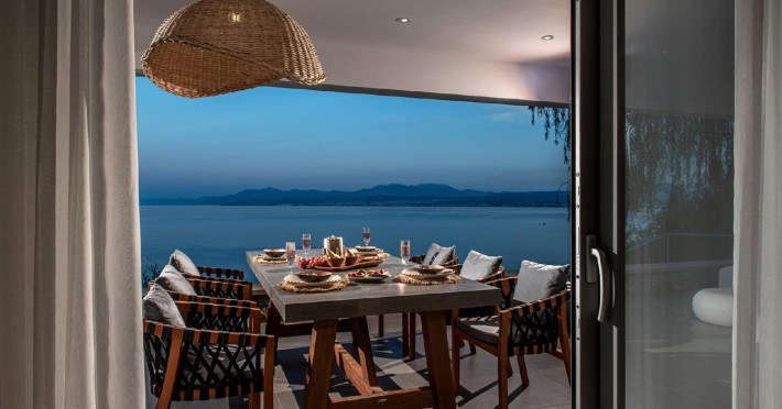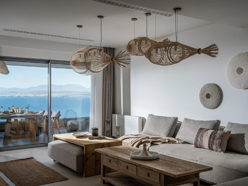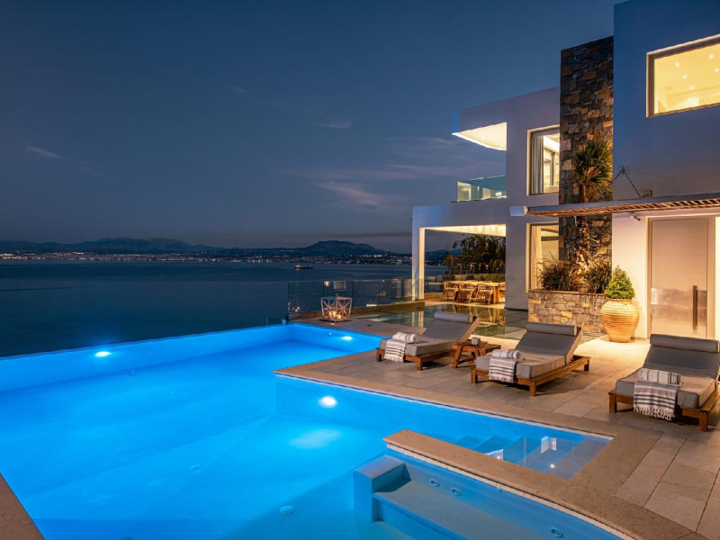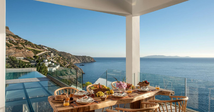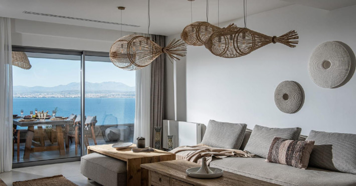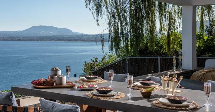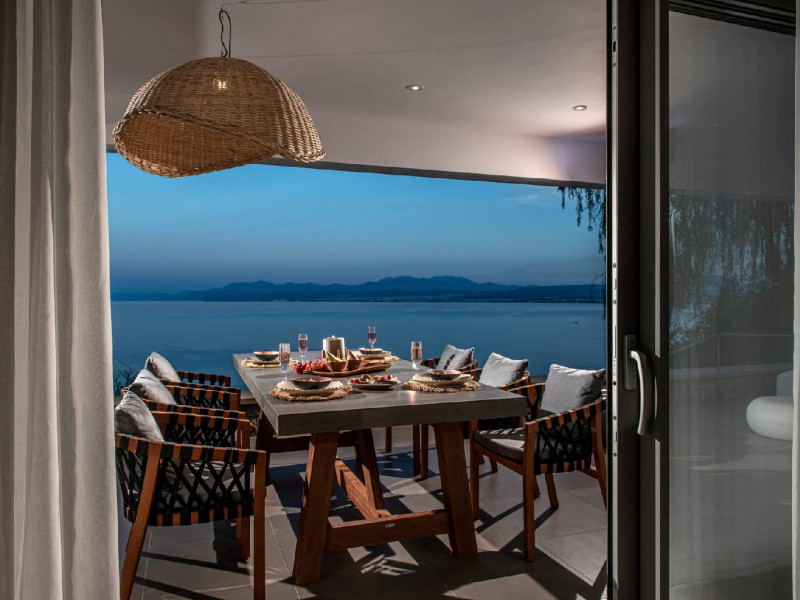Lady Sea is a 6 Bedroom Sea View Villa in Palaiokastro, Crete, which unfolds in three levels and blends wisely into the beautiful Heraklion landscape, offering complete privacy and impeccable sea views to its guests. It is an ideal hideaway to unwind while discovering Crete; an island where nature, history, and heart-warming hospitality meet. All interior and exterior spaces of the Villa are outlined in dialogue with the impressive sea views, creating indulging relaxing areas that celebrate the outgoing Mediterranean lifestyle. Built on an approximately 2,000 m2 plot, the Villa has an independent entrance, while an indoor elevator and outdoor staircase connect the different levels. Max Capacity: 12 – 14 (Max Adults 12) Villa’s Square Meters: 496 m2 (2,000 m2 plot) Villa’s Square Meters with Outdoors: 2.350 m2 Three Floors: connected by an indoor elevator and staircase. There is an outdoor staircase connected First and Second Levels Bedrooms: 6 Bedrooms & 2 extra beds Bathrooms: 7 full bathrooms and 1 WC (6 ensuite bathrooms with showers, the master bedroom has shower & bathtub) Large Infinity Swimming Pool: 50m2 with built-in jacuzzi Private secure open parking Indoor Elevator Direct Access to a Private Sandy Beach