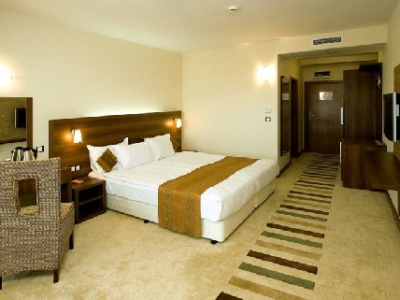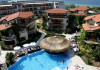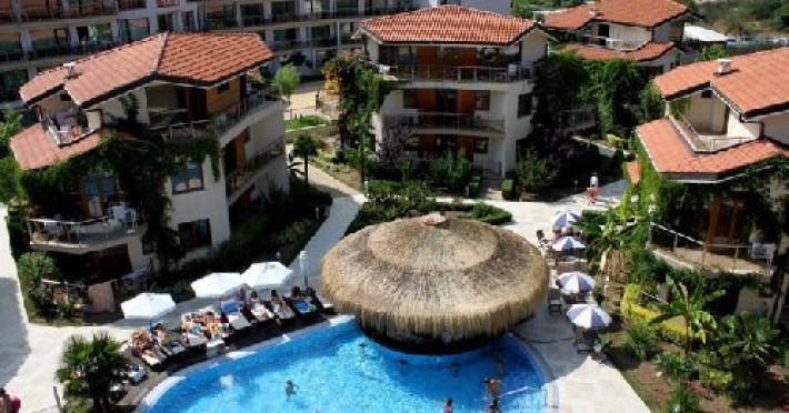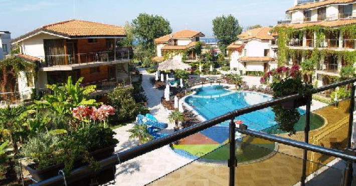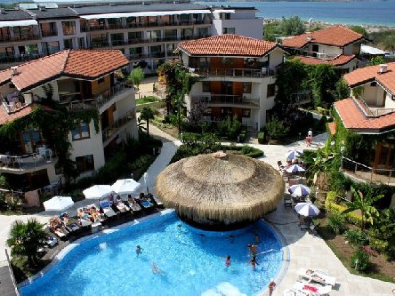 Complexul este potrivit pentru familiile cu copii, dar si pentru cei care isi doresc relaxare pentru minte, corp si suflet. Localizare: pe plaja, intr-un cadru natural deosebit. Dotari camere: complexul consta in 75 apartamente situate in 6 vile si un bloc, 46 camere in hotel si 10 suite; aer conditionat, telefon, televizor, terasa/balcon; apartamentele au bucatarie. Facilitati: restaurant cu specific bulgaresc, baruri, piscina exterioara si interioara, centru fitness, centru Spa (400 mp, cu sauna, sali de tratamente, baie cu aburi, sali de masaje), terenuri de tenis, sali de conferinte, aer conditionat si incalzire centralizata, magazine, centru medical, loc de joaca pentru copii, lift panoramic, sporturi acvatice. GRATUIT: accesul la piscina, sezlong si umbrela la piscina exterioara, fitness, jacuzzi, conexiune la internet, parcare (in limita locurilor disponibile, nu se poate garanta/rezerva din agentie).