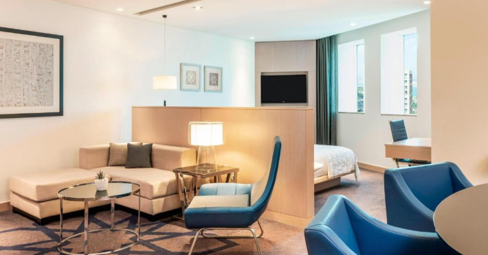 Experimentați eleganța atemporală in camere elegante, bucurați-vă de un tratament regal la exclusivistul Le Royal Club Lounge și relaxați-vă in oaza piscinei in aer liber. Gustați preparate neobișnuite la restaurantele premiate, printre care PJ's Irish Pub, vechi de 25 de ani, și Stratos, singurul lounge rotativ din oraș cu vederi uluitoare la mare. Explorați peste 2.000 de metri pătrați de spații creative pentru intalniri și locații fermecătoare pentru nunți, distinse in mod unic ca singura destinație unde evenimentele sunt imbrățișate in strălucirea caldă a luminii naturale, asigurand o experiență incomparabilă.