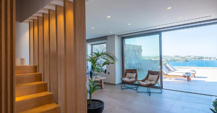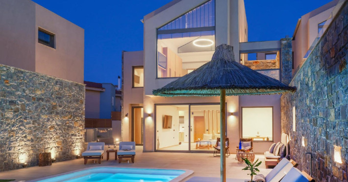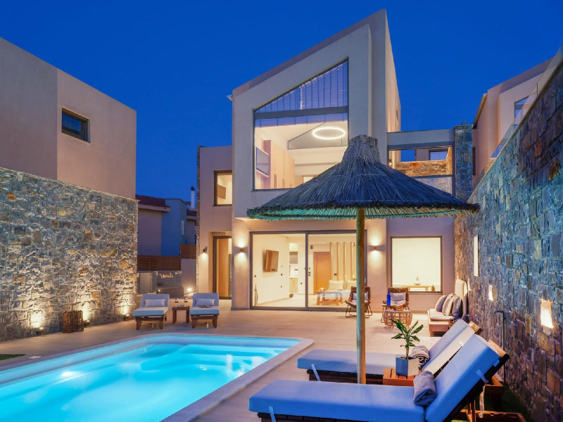 Modern villas in Crete, ideal retreat location ,nestled in the picturesque seaside village Mades Ligaria. The beautiful and peaceful location is a perfect destination for families, couples, newly-wed or a friendly companionship. Large terraces, comfortable verandas, balconies and patios offer a direct view of the blue sea and the spectacular Cretan mountains. We invite you to explore the majestic scenery and tranquility of the area and enjoy your stay in our facilities.
