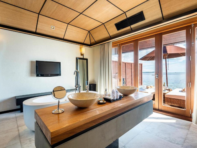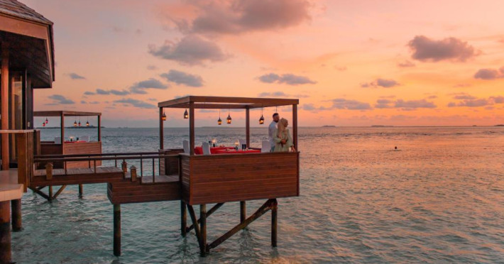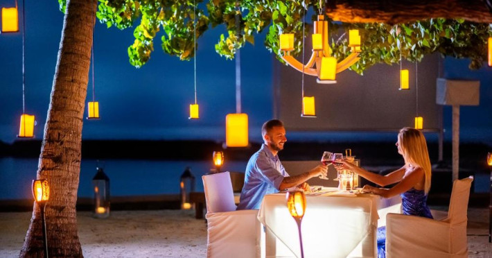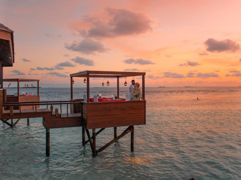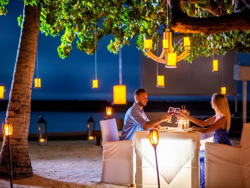 Restaurantul in aer liber Lily Maa are vedere panoramică la lagună si serveste bufete pe tot parcursul zilei, alături de o selectie de 70 de tipuri de vin premium. Restaurantul Tamarind oferă preparate ce combină tradițiile culinare indiană si chineză, iar la The Wave puteți savura homar proaspăt. Este disponibil si un mic dejun chinezesc.