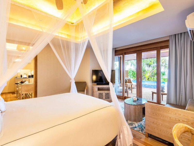 Toate suitele si vilele sunt dotate cu aer conditionat, TV cu ecran plat cu canale prin satelit si sistem home theatre și beneficiază de o terasă privată. De asemenea, acestea includ un aparat Nespresso, facilităti pentru prepararea de ceai, un seif si un minibar. Baia privată este prevăzută cu duș, cadă spa, set dentar si papuci. Oaspeții pot viziona canale TV chineze prin cablu si au la dispoziție ziare in limba chineză.