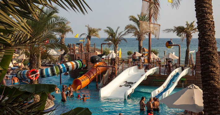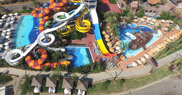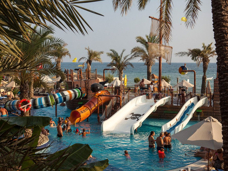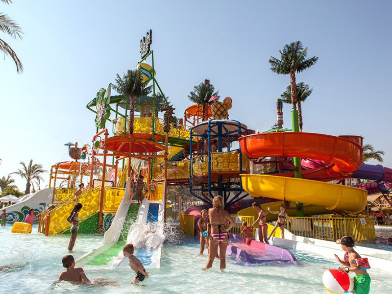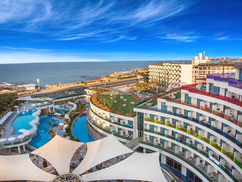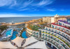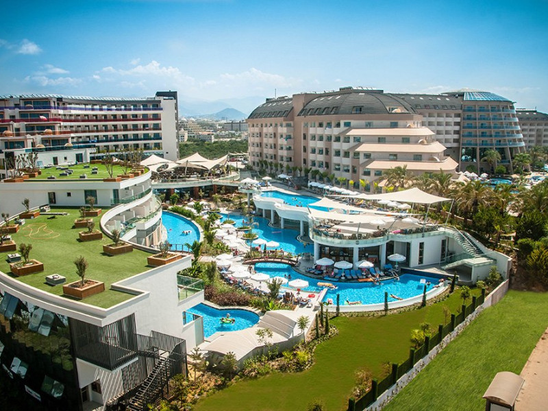 Facilitati hotel: restaurant principal, 4 restaurante a la carte, pool bar, beach bar, 5 piscine exterioare cu apa dulce si apa de mare, piscine pentru copii, piscina interioara, jacuzzi, luna park, aqua park- Tropical Island cu 10 tobogane, sala de jocuri, teren de tenis, teren de baschet, sala de fitness, centru spa ( sauna, baie turceasca, sali de masaj, etc ), mini club, coafor, amfiteatru, discoteca, sala de conferinta, magazine .