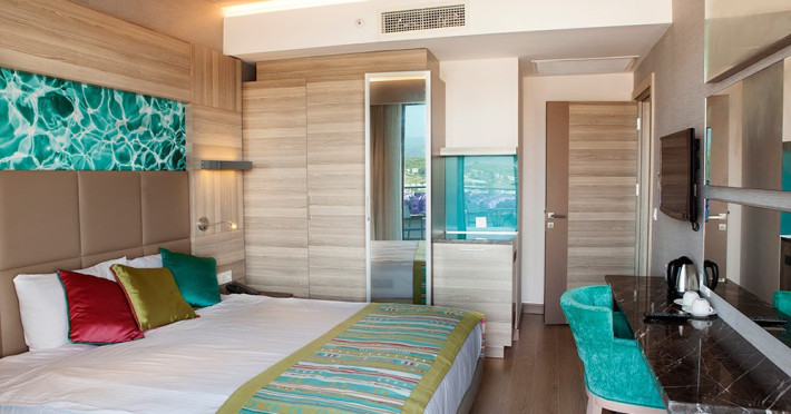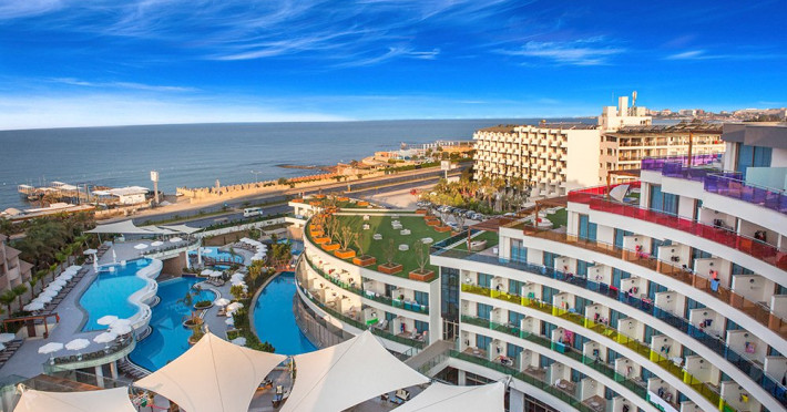 Descriere: Hotel construit in anul 2014 cu o suprafata totala de 18.000 mp si 241 camere repartizate astfel : 172 camere standard , suprafata 26-30 mp , capacitate maxima cazare 3 adl + 1 copil 20 camere swim up , suprafata 30 mp 37 camere family , supafata 35-45 mp , capacitate maxima cazare 4 adl 3 camere pentru persoane cu dizabilitati 9 suite.