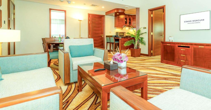 Grand Mercure Residence este situat in centrul orașului, aproape de toate destinațiile de afaceri și cumpărături. Hotelul pune la dispoziție 3 opțiuni de luat masa și servit băuturi, 5 săli de conferințe și intalniri, un Club Lounge, centru de afaceri, piscină cu temperatură controlată, cadă cu hidromasaj, saună, baie de aburi și sală de gimnastică.