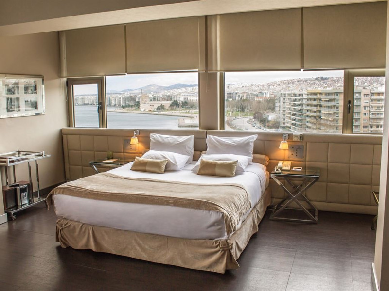Localizare: Salonic, la 15 km de aeroportul 'Macedonia'. Situat pe malul marii cu vedere spectaculoasa spre mare, 'Turnul Alb' si orasul vechi. Facilitati hotel: Lounge bar Salonica, Garden Cafe, bar la piscina, restaurant Simposium. Schimb valutar, centru de afaceri (gratuit), acces gratuit la internet, servicii de secretariat, room service, serviciu de spalatorie, calcatorie express, coafor, salon de frumusete, magazin de flori, parcare acoperita (cu plata), parcare gratuita la hotel, 12 Sali de conferinte (cap.aprox. 700 de locuri), cu echipament optico-acustic , servicii de secretariat, un centru de fitness, sala de gimnastica, sauna, masaj, piscina exterioara, serviciu de babysitting (la cerere). Facilitati camera: Facilitatile includ aer conditionat, incalzire, mini-bar, TV prin satelit ( pay TV), telefon cu mesagerie vocala, Wi-Fi - acces la internet, video si radio incorporat, seif, baie (cada), uscator de par, ferestre izolate fonic, balcon. Camerele de la parter, fara balcon. Junior Suite (~42 mp) Camera spatioasa, cu zona de relaxare si balcon (vedere la mare laterala). Suite Deluxe Sea View (~60 mp) Doua camere. Un dormitor si un salon. Grup sanitar si baie - separata. Presidential Suite (~ 120 mp) Perlele hotelului - 2 apartamente prezidentiale, cu vederi panoramice la mare. Dormitor matrimonial cu dressing mare, adiacent, salon, jacuzzi. Un apartament dispune de cinema propriu. Camere pentru fumatori. Pagina web: http://www.makedoniapalace.com/