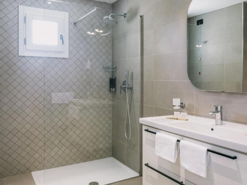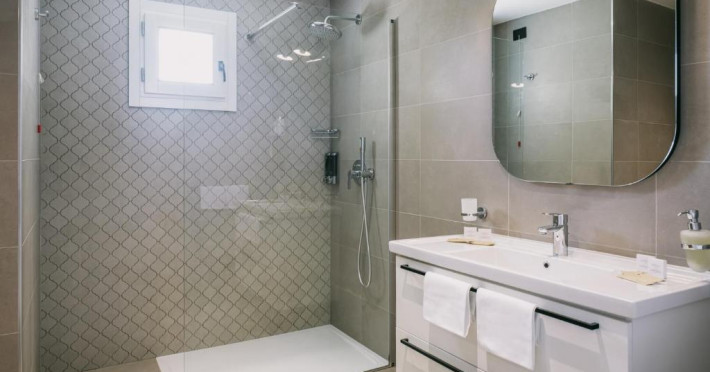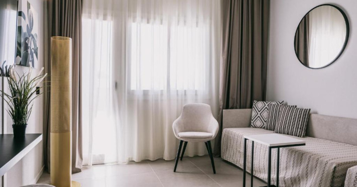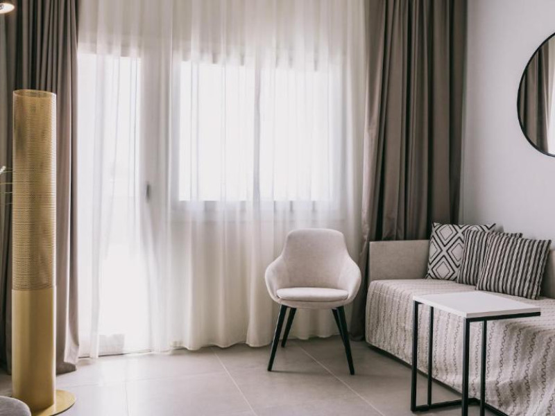 Cazare confortabilă: Camerele sunt dotate cu aer condiționat, băi private, balcoane cu vedere la mare și facilități moderne. Camerele de familie și unitățile de la parter oferă un confort sporit.