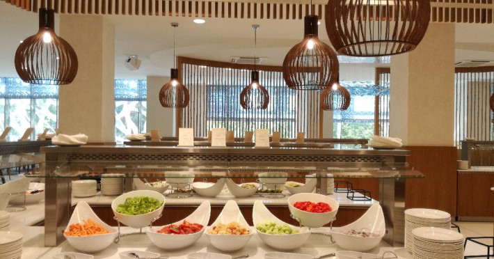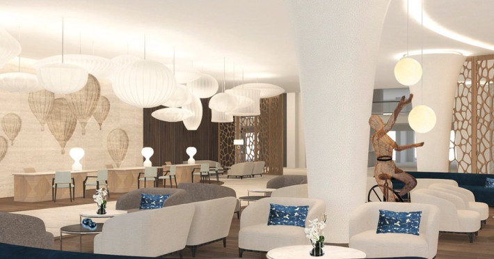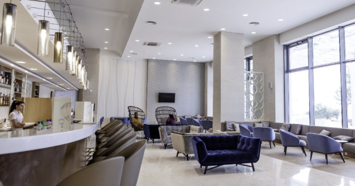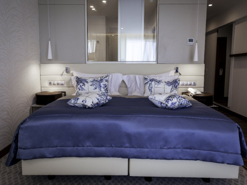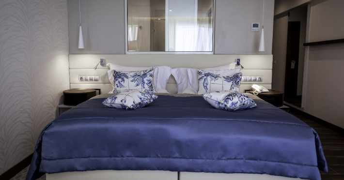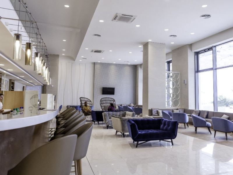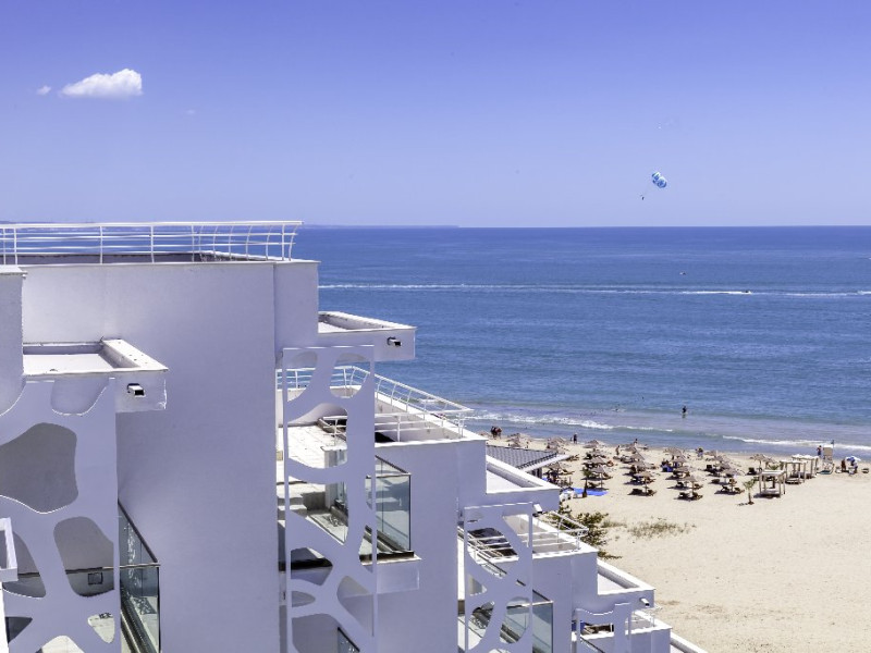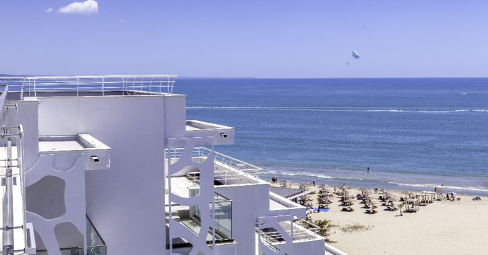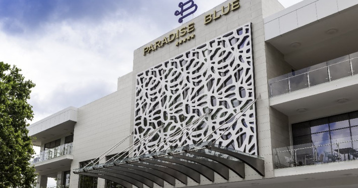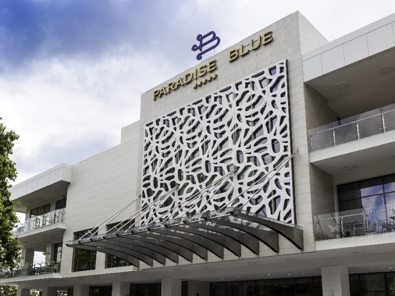 Localizare: Paradise Blue 5* este un hotel nou, situat in centrul statiunii, deschis invara anului 2017. Informatii hotel: receptie, lobby bar, pool bar, restaurant principal bufet, restaurant a-la-carte, bar la piscina, terasa, club de noapte, centru Spa cu programe unice si inovatoare de tratament, piscina interioara, piscina exterioara cu vedere superba spre mare, piscina exterioara pentru copii cu atractii acvatice, fitness, club pentru copii, Internet, sala de conferinta cu 500 locuri, Room service, spalatorie si calcatorie, Rent-a-car, birou de schimb valutar, coafor, parcare subterana. Servicii masa: Mic dejun sau demipensiune. Servicii cazare: 233 de camere duble si apartamente cu 1 dormitor, repartizate pe 9 etaje, cu vedere la parc sau la mare. Toate camerele dispun de design modern si elegant avand in dotare: TV cu ecran plat, cablu TV, seif, telefon, acces la internet, minibar, aer conditionat, grup sanitar propriu cu cada de baie si cabina de dus, uscator de par si balcon. Gratuit: plaja privata cu 2 sezlonguri si 1 umbrela pe camera.