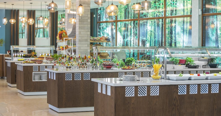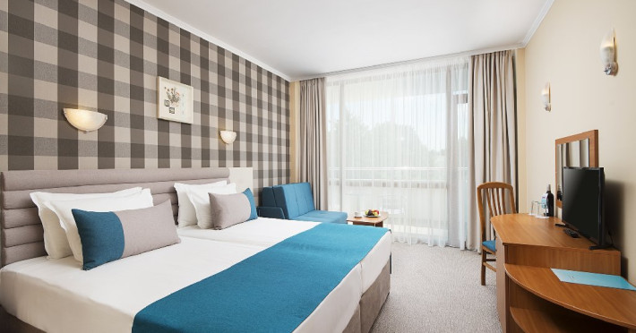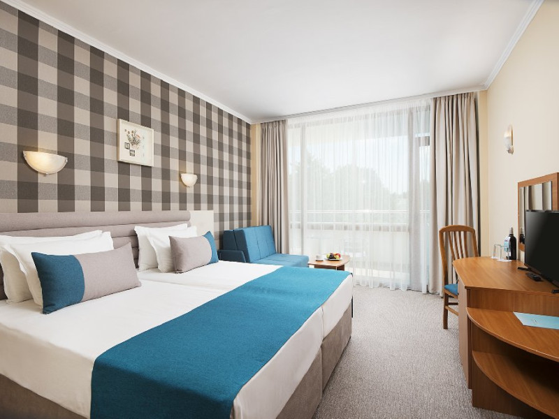 Facilitati hotel: restaurant principal cu terasa cu vedere spre piscina si spre mare, lobby bar, barbeque, discoteca, piscina interioara, piscina exterioara, piscina pentru copii, bar la piscina, terasa, sauna, sala de masaj, sala de fitness, biliard, bowling, darts, tenis de masa, coafor, teren de joaca pentru copii, programe de animatie, acces internet, centru de afaceri, casa de schimb valutar, parcare.