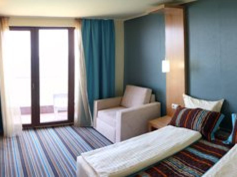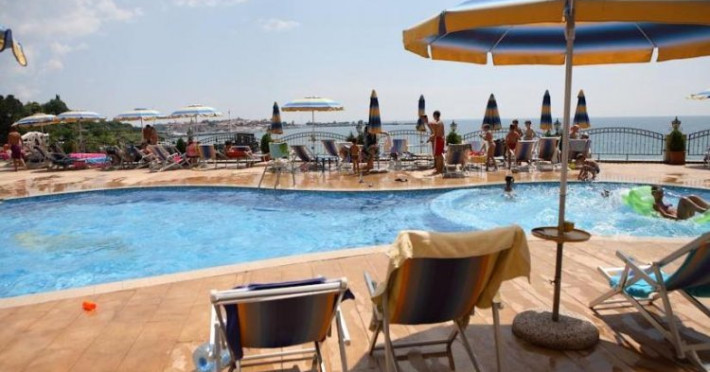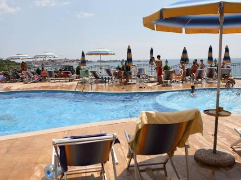 Descriere : Hotelul Mirage**** din Nessebar a fost construit in anul 2008, si a fost dat in folosinta in anul 2009,are o vedere panoramica la Marea Neagra. Tip masa : Mic dejun, demipensiune. Localizare : Hotelul Mirage**** este situat pe coasta sudica a statiunii Nesssebar, la aproximativ 500 m distanta fata de orasul vechi Nessebar, pe plaja. Plaja : Plata lata cu nisip fin si intrare lina in apa. Dotari camere : Hotelul Mirage *** dispune de 56 de camere duble si 2 apartamente, moderne si confortabile.Toate camerele au in dotare: telefon, TV-Satelit, minibar, aer conditionat, grup sanitar propriu cu cada, uscator de par, balcon cu vedere panoramica la mare. Facilitati : Hotelul ofera turistilor urmatoarele facilitati si servicii:Receptie,Lobby Bar,restaurant,terasa cu vedere la mare,room service,internet Wi-Fi contra cost,piscina exterioara,sauna,sala de fitness,loc de joaca pentru copii,parcare in limita locurilor disponibile. Facilitati copii : - Loc de joaca pentru copii. - Copii cu varsta intre 2-13 ani cazati in camera dubla cu 2 adulti beneficiaza de 100% gratuitate . Restaurant : Restaurant cu preparate culinare traditionale si preparate mediteraneene, cu o capacitate de 200 locuri. Alte informatii : Piscina exterioara are o sectiune pentru copii. Clasificarea agentiei: 4*