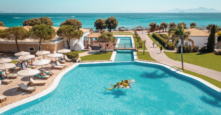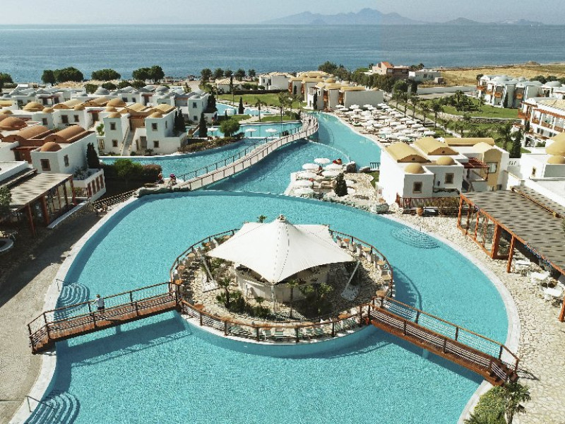 Descriere: Hotelul a fostdeschis in 2010 si dispune de 499 camere si apartamente situate in bungalouri si in cladirea principala. Localizare: in Kardamena, pe plaja cu nisip si pietricele, la 27 km de orasul Kos, la 7 km de centrul statiunii Kardamena si la 10 km de aeroport. Facilitati hotel: restaurant principal, 10 restaurante tematice, 6 baruri, 8 piscine in aer liber, o piscina acoperita, tobogane cu apa, piscina pentru copii, sezlonguri si umbrelute la piscina si pe plaja gratuit, internet (cu plata), minimarket, magazin de suveniruri si bijuterii, inchiriere de masini si motoscutere. Clasificarea oficiala a hotelului in Grecia: 5*. Dotari camere: baie cu cada sau dus, papuci si halate de baie, uscator de par, aer conditionat, TV satelit, minibar (cu plata), seif (cu plata), telefon, internet (cu plata), balcon sau terasa. Camerele Family sunt compuse din doua spatii separate. Maisonetele sunt compuse din 2 etaje cu scara interioara si au 2 bai. Activitati: teren de tenis, minifotbal, canoe, windsurfing (cu certificat), barci cu pedale, volei pe plaja, fotbal pe plaja, polo pe apa, tenis de masa, darts, aerobic, salon de bridge, programe de animatie si divertisment. Cu plata suplimentara: biliard, sala de jocuri electronice, sporturi acvatice motorizate, go kart, spa wellness (diverse tratamente si terapii). Facilitati pentru copii: Mitsis wonderland pentru copii: piscina, tobogan cu apa, loc de joaca si sala de joaca, carusel, mini zoo, calarie ponei (cu plata), animatie, mini discoteca, junior club Masa: all inclusive: mic dejun, pranz si cina bufet, gustari intre mese, bauturi alcoolice si racoritoare locale neimbuteliate. Opinia noastra: complex hotelier nou, cu foarte multe facilitati pentru familiile cu copii, se intinde pe o suprafata foarte mare. Clasificarea tour operatorului: 5* Nota: pentru anumite facilitati, hotelul poate solicita taxe suplimentare; in momentul sosirii la hotel, solicitati receptiei sa va informeze cu exactitate asupra lor. Website: www.mitsishotels.com