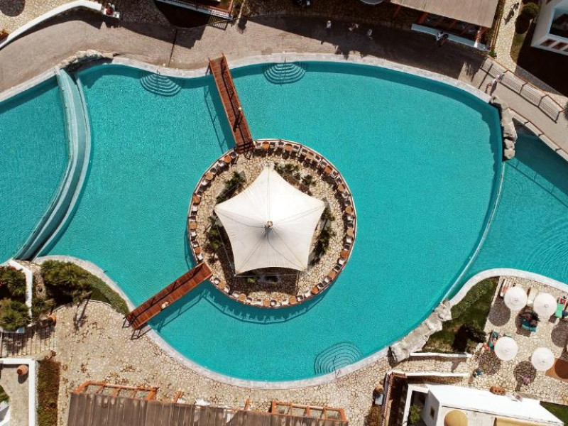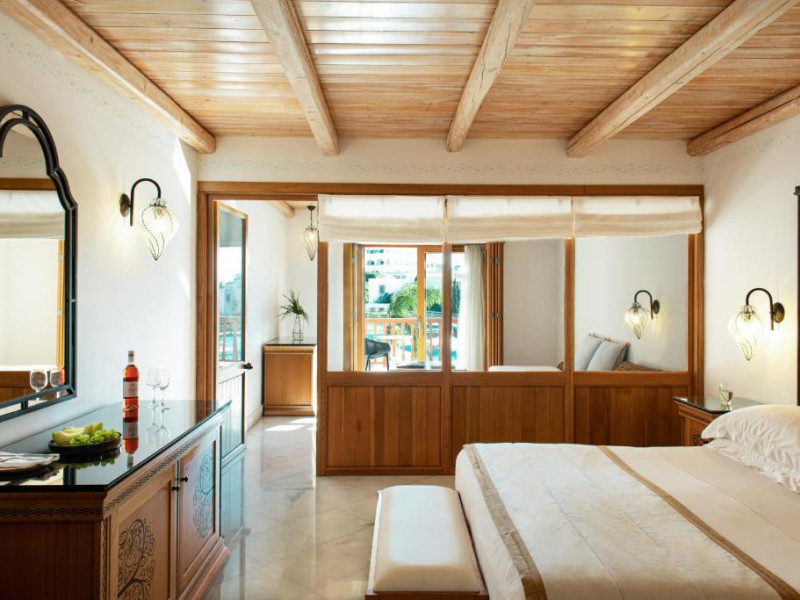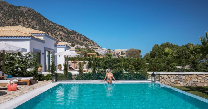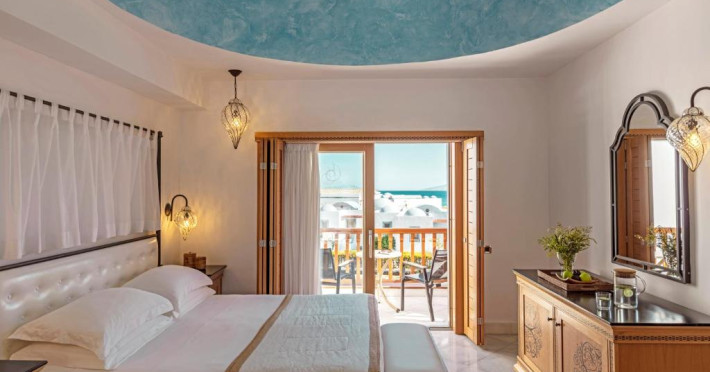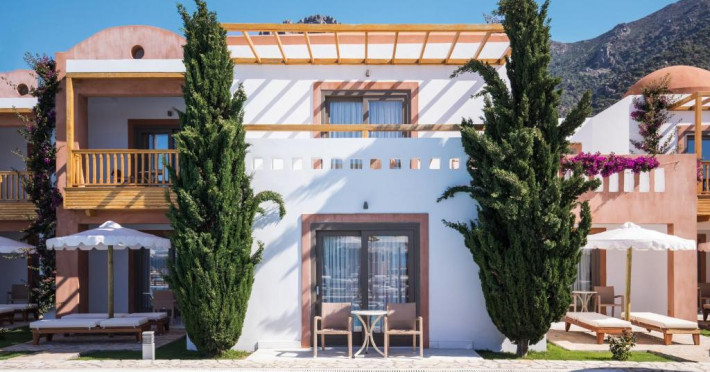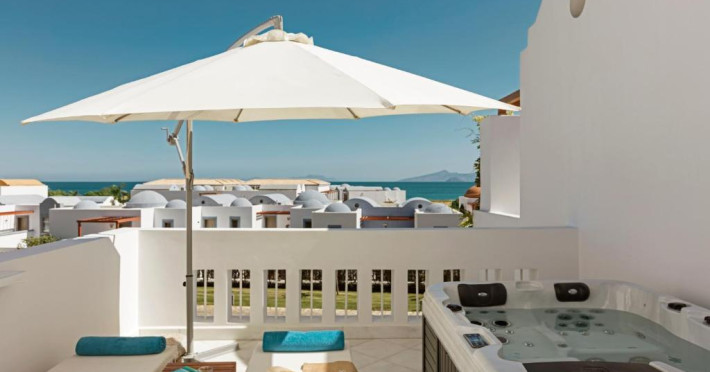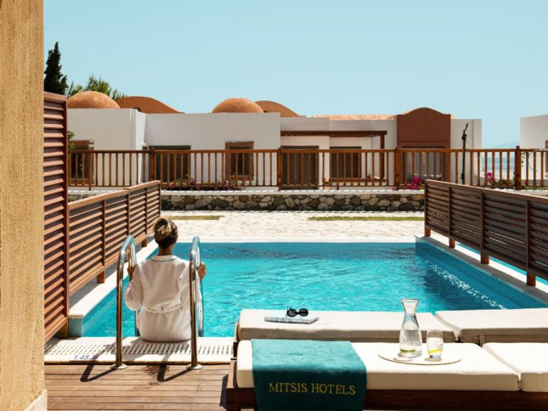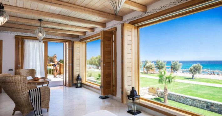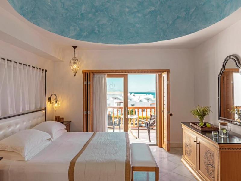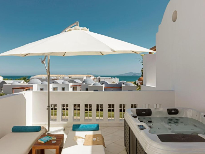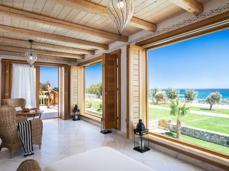 Mitsis Selection Blue Domes, de 5 stele, pe malul mării, oferă piscine in aer liber. Hotelul all inclusive oferă oaspeților mai multe opțiuni de luat masa și baruri.