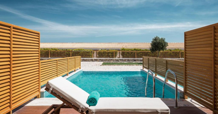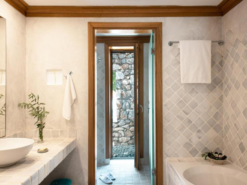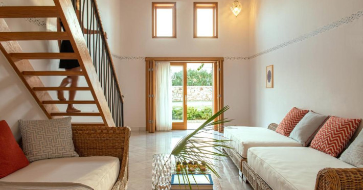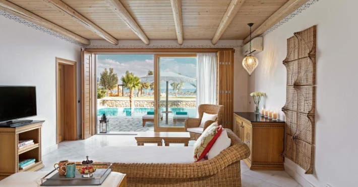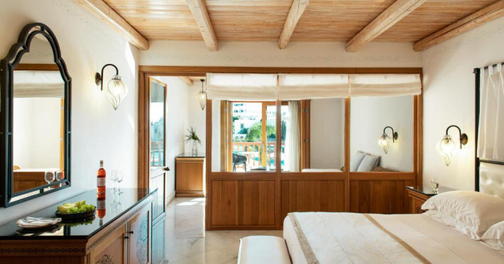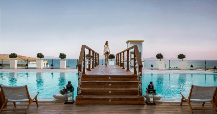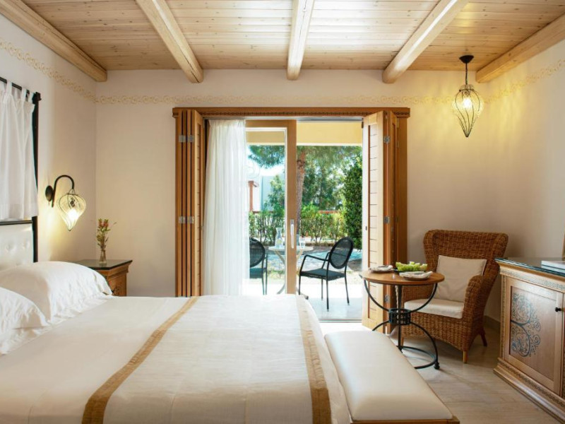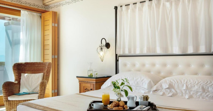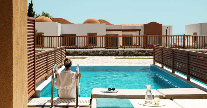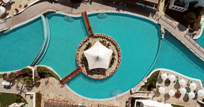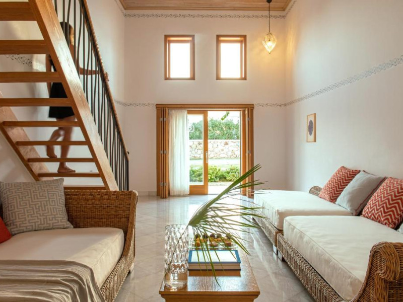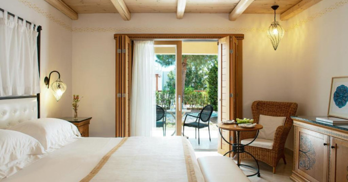 Mitsis Selection Blue Domes, de 5 stele, pe malul mării, oferă piscine in aer liber. Hotelul all inclusive oferă oaspeților mai multe opțiuni de luat masa și baruri.