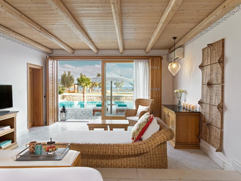 Camerele sunt complet dotate cu aer condiționat, minibar, TV prin satelit și WiFi gratuit. Room service este oferit 24 de ore pe zi, iar fiecare cameră are balcon sau terasă privată.