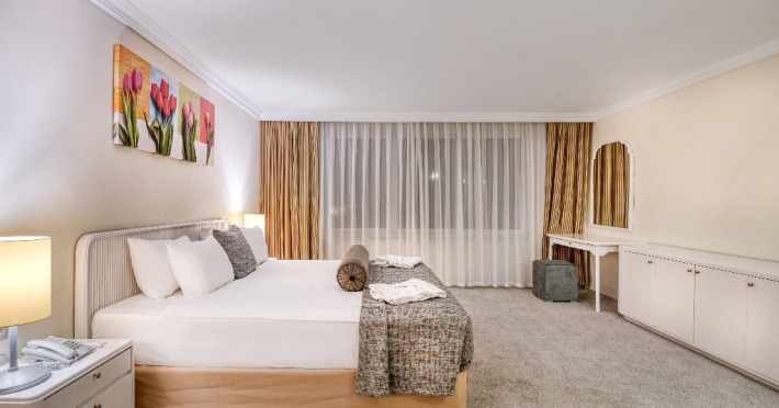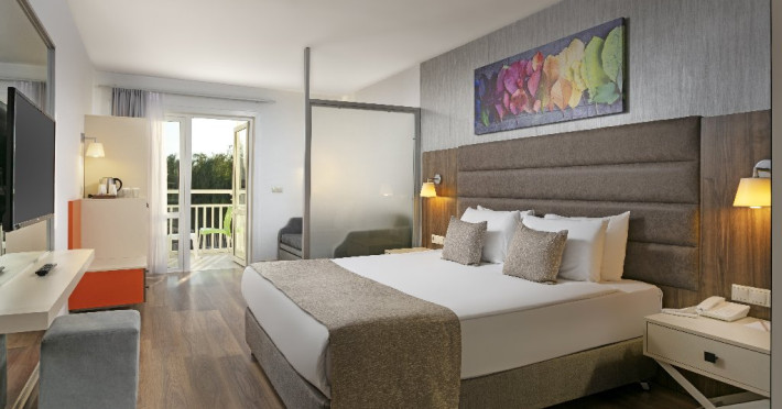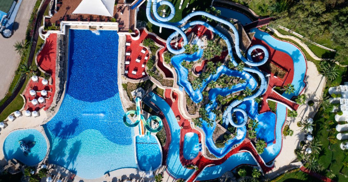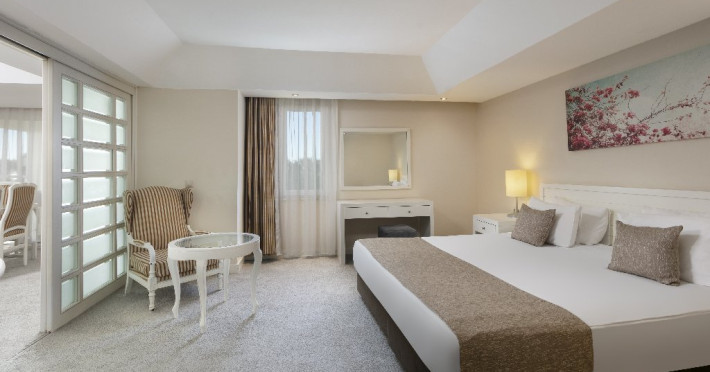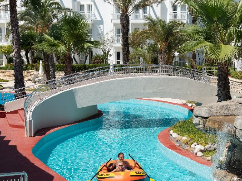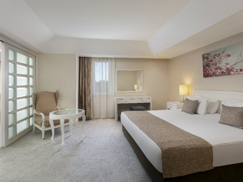 Facilitati hotel: Hotelul ofera oaspetilor sai urmatoarele facilitati: restaurant principal in regim de bufet suedez, patiserie, snack bar la plaja, 2 restaurante a la carte cu specific turcesc si asiatic pentru care se solicita rezervare care este gratuita, 1 restaurant cu specific pescaresc la care rezervarea costa 15 euro/pers, 7 baruri, cafenea, discoteca, 5 piscine exterioare pentru adulti, 2 piscine cu tobogane, 2 piscine pentru copii, 2 terenuri de tenis cu teren sintetic, tenis de masa, muzica live, darts, volei pe plaja, centru fitness, sauna, tir cu arcul, baie turceasca, sali de conferinta cu plata, polo pe apa, camera de joaca, cinema, loc de joaca, animatie, mini disco, piscina pentru copii umbrita, plasa pentru tantari, mancare speciala pentru copii. Servicii cu plata: spalatorie si calcatorie, room service, unele bauturi alcoolice de luxe de import, sucurile proaspete de fructe, bauturile imbuteliate si la doza, sporturile nautice motorizate si nemotorizate, echipamentul si lectiile de tenis, nocturna terenului de tenis (5 euro/ora), rent a car, babby sitter, masaj, servicii cosmetice, carucior pentru copii, pavilioanele de pe plaja, biliard.