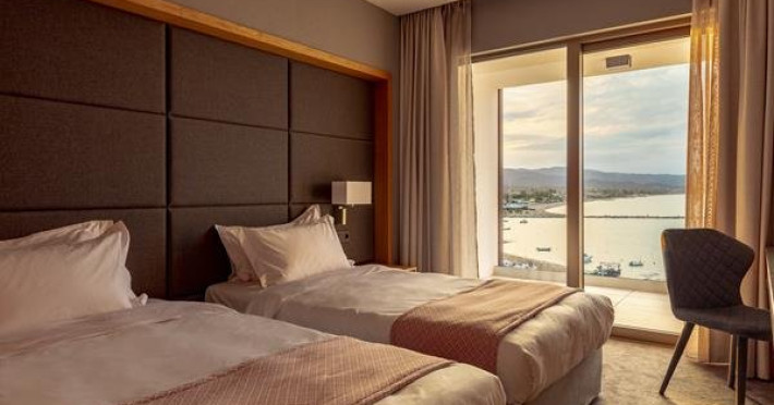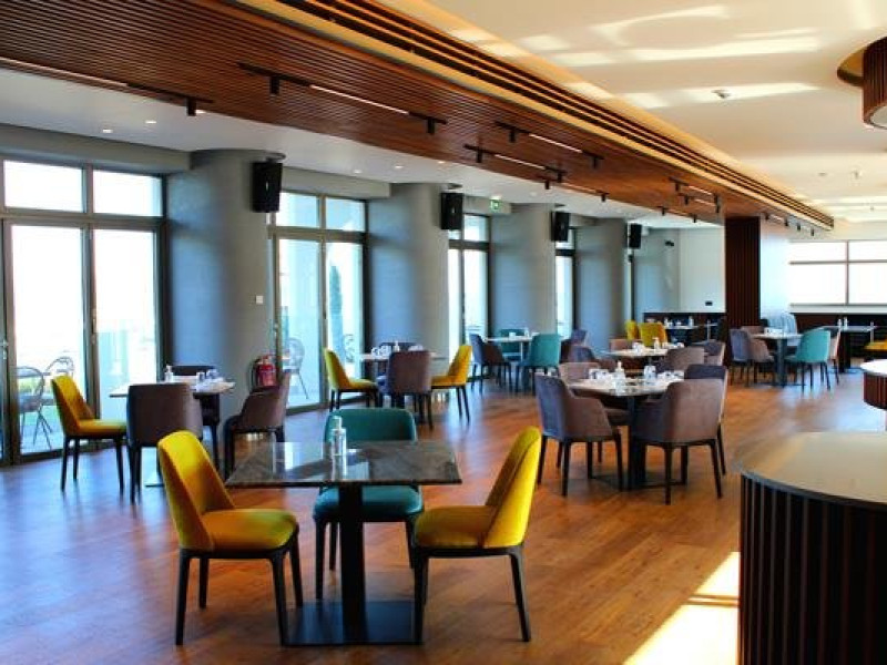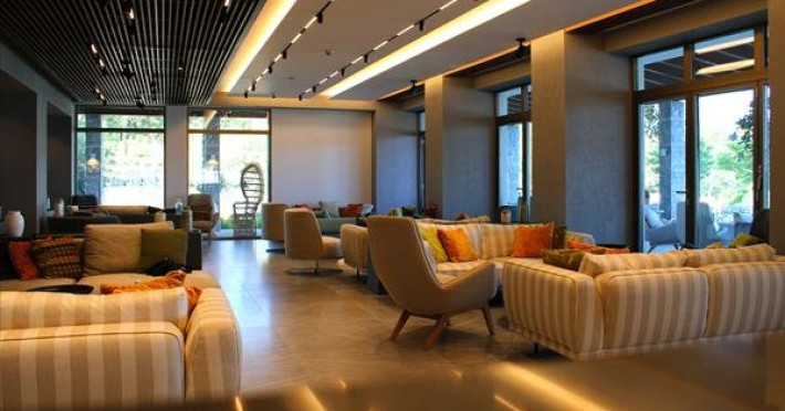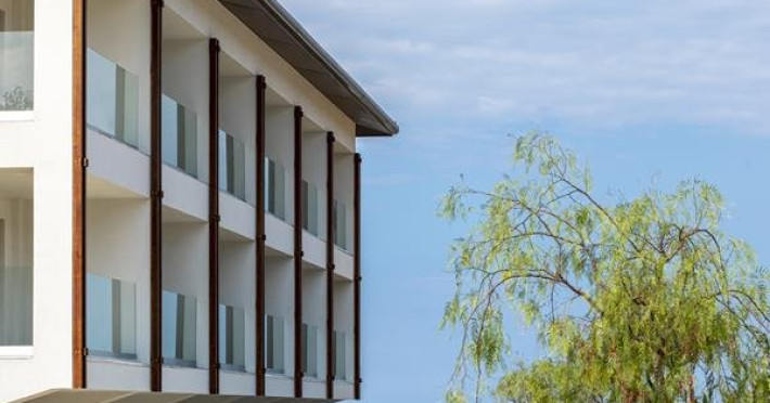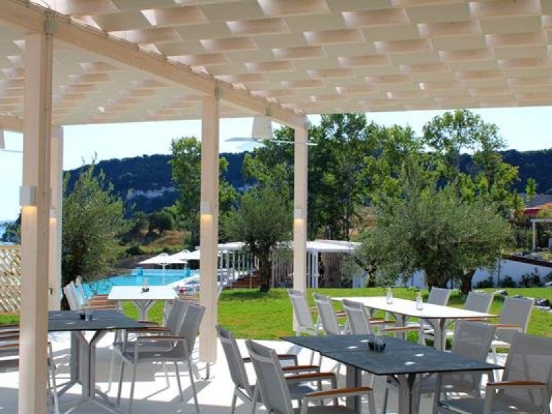 Camerele sunt separate in doua locatii diferite - in cladirea principala sau in apartamentele din jurul acesteia. In cladirea principala se afla receptie si biroul concierge, lobby barul si restaurantul care are o sectiune pentru copii. In exterior, cu vedere la port si la piscine, este situata Taverna cu o scena pentru muzica live si spectacole. Exista doua piscine infinity, una dintre ele cu zona pentru copii. Exist acces direct la plaja si la mare prin scari. Langa piscine se afla Beach & Pool Bar si restaurantul Fusion. Mini Market si Beauty Salon sunt situate langa bungalouri.