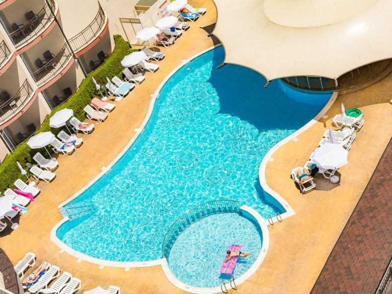 Localizare: Hotelul este la 1 minut pe jos fata de plaja. Situat chiar pe promenada statiunii Sunny Beach. Aeroportul Burgas este la 30 de km de unitatea de cazare si Aeroportul Varna se afla la 110 de km de hotel.