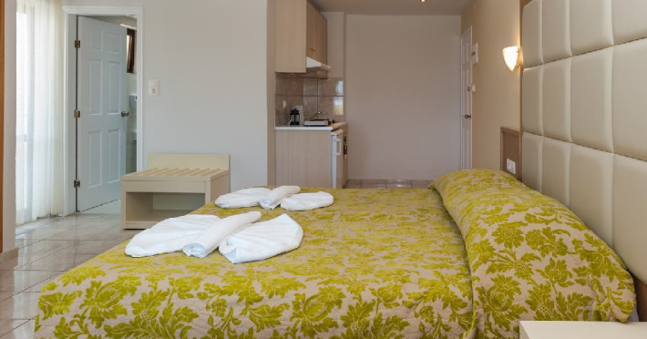 Descriere: Muses Studios este un mic hotel cu studiouri si apartamente, amplasat intr-o zona linistita din Kavros. A fost renovat integral in 2018. Localizare: la aproximativ 800 m de plaja din Kavros, aprox 250 m de statia de autobuz, 3 km de Georgioupolis, 18 km de Rethymno si 51 km de aeroportul din Chania. Dotari camere: aer conditionat, televizor, mini bucatarie cu mini frigider, plita, seif, access internet WiFi (gratuit), uscator de par, balcon/terasa. Facilitati hotel: bar, piscina, sezlonguri si umbrele (gratuite la piscina si contra cost pe plaja), acces internet WiFi (gratuit). Clasificarea oficiala: 4 chei Nota informativa: Pentru anumite facilitati din hotel sau din camera, hotelierul poate solicita taxe suplimentare. In momentul sosirii la hotel solicitati receptionerului sa va informeze cu exactitate asupra lor. Taxa de statiune obligatorie - se plateste la receptie: - 0,5 euro/camera/noapte la hotel 1-2*; - 1,5 euro/camera/noapte la hotel 3*; - 3 euro/camera/noapte la hotel 4*; - 4 euro/camera/noapte la hotel 5*; - 0,5 euro/noapte/apartament sau studio la unitatile de cazare tip apartamente si studiouri.