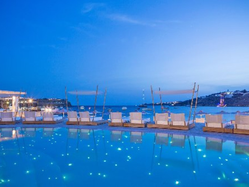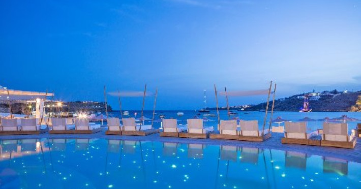 Descriere: Hotelul Mykonos Blanc, complet renovat in 2015, combina eleganta, prospetimea si confortul cu arhitectura traditionala cicladica. Localizare: Un hotel cu o pozitie de invidiat, pe plaja de nisip din Ornos, cu acces facil la supermarket, farmacie, restaurante sau cafenele. Centrul orasului Mykonos este la 2,5km, portul vechi la 3km, iar aeroportul la 4,5km Dotari camere: toate camerele (duble standard, duble superior, junior suite, senior suite sau blanc suite) sunt dotate cu aer conditionat, TV satelit, seif, internet wireless gratuit, DVD player, halate si papuci de baie, uscator de par, telefon, mini frigider, uscator de par, balcon/terasa. Facilitati hotel: receptie, piscina, restaurante (Pasaji, Kuzina, Farina), bar pe plaja, internet corner, parcare, room service, spalatorie, fitness, centru wellness. Tip masa: mic dejun Plaja: de nisip, in fata hotelului Clasificarea oficiala: 3* Web site: www.mykonosblanchotel.com