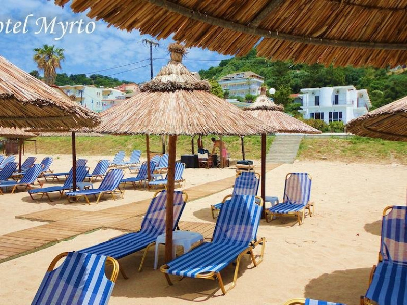 Localizare: Hotelul se gaseste in statiunea Vrachos chiar pe plaja nisipoasa. Dotari camere: Toate camerele au: A/C, TV , mini frigider, balcon cu vedere la mare, baie cu dus. Facilitati hotel: Pune la dispozitia turistilor, receptie, cafenea, bar, snack bar, tv-lounge, salon servire mic dejun, restaurant, umbrelute si sezlong-uri gratuite, Wi-Fi, parcare. Plaja:: Situat pe plaja Tip masa: Mic dejun/ Demipensiune Alte informatii: Website: http://prevezaa.wix.com/hotelmyrto#!vstc2=the-hotel