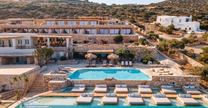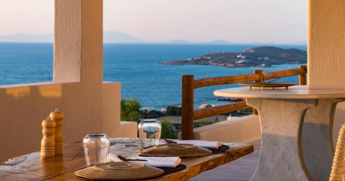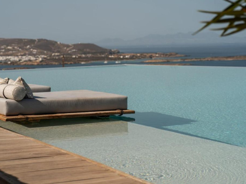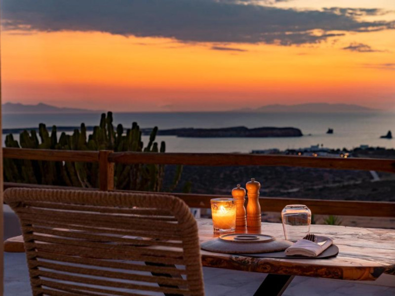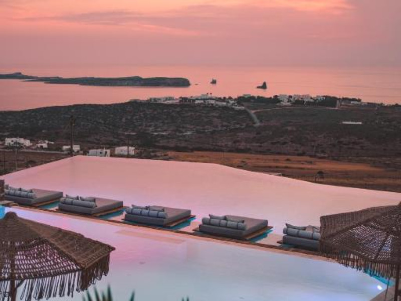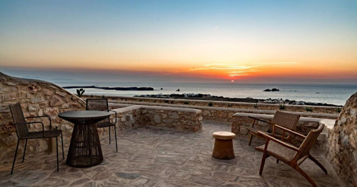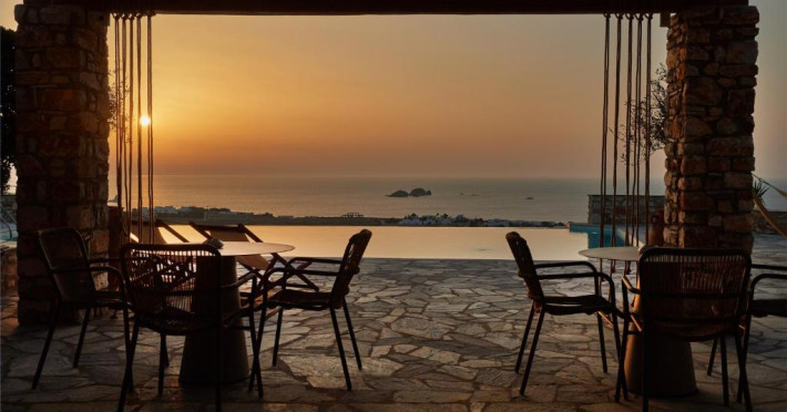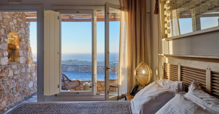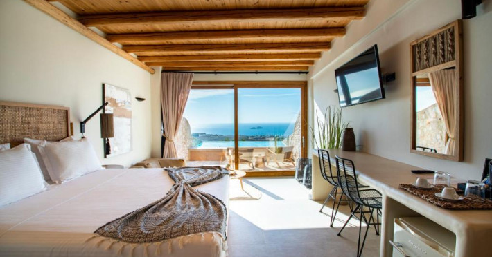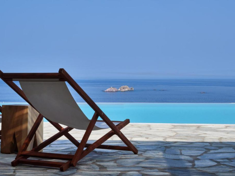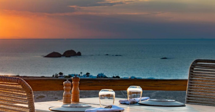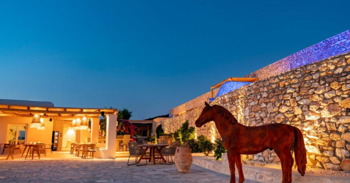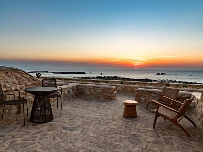 Camerele elegante beneficiază de terase private cu vedere spre Marea Egee, iar piscina infinity oferă un cadru perfect pentru momentele de relaxare. Restaurantul hotelului servește preparate mediteraneene rafinate, cu accent pe ingrediente locale și fructe de mare proaspete.