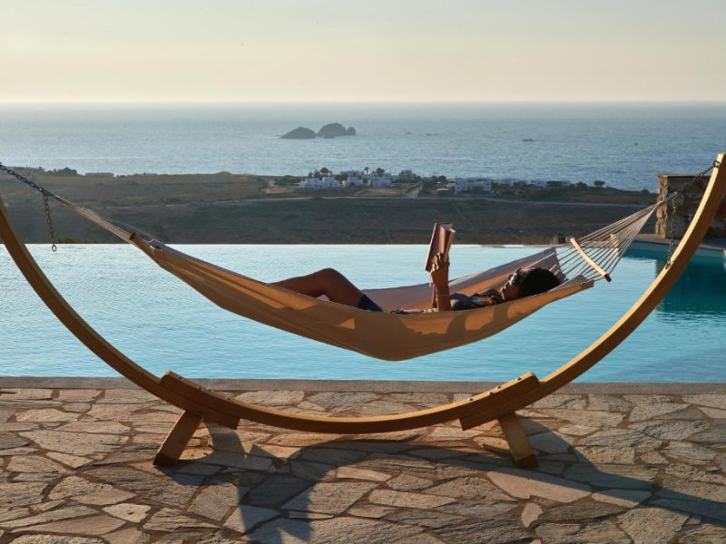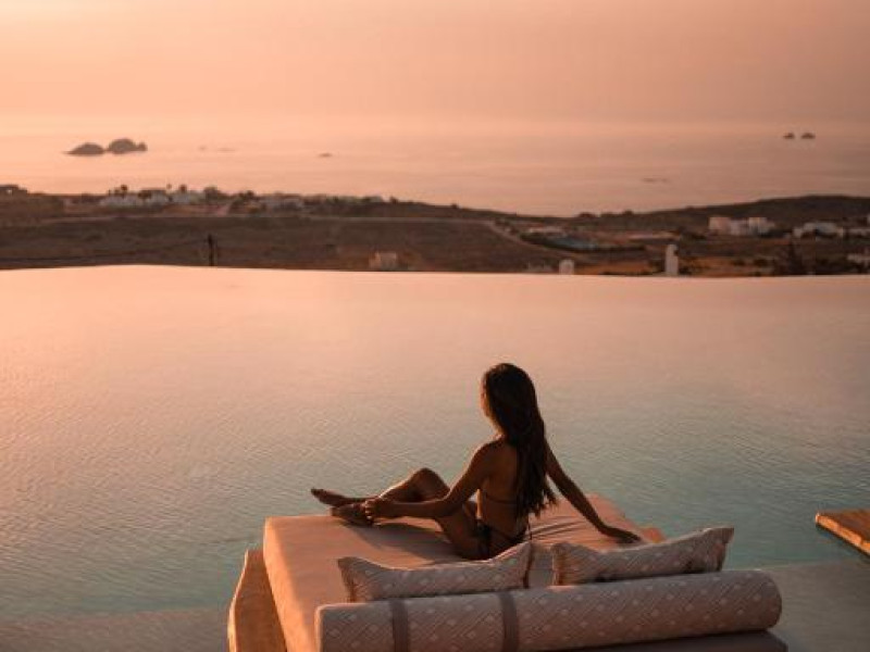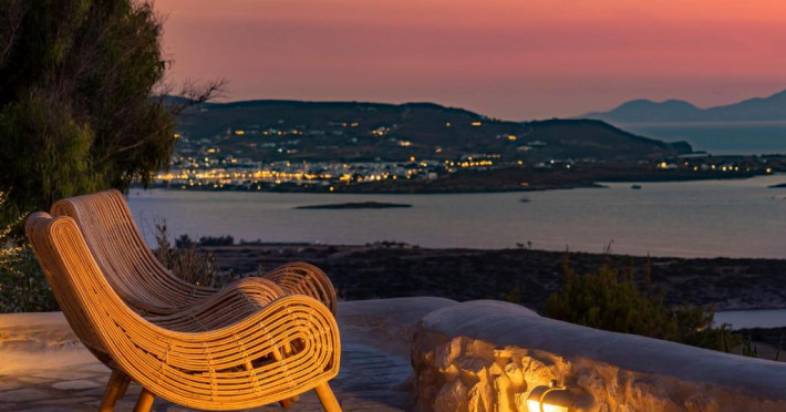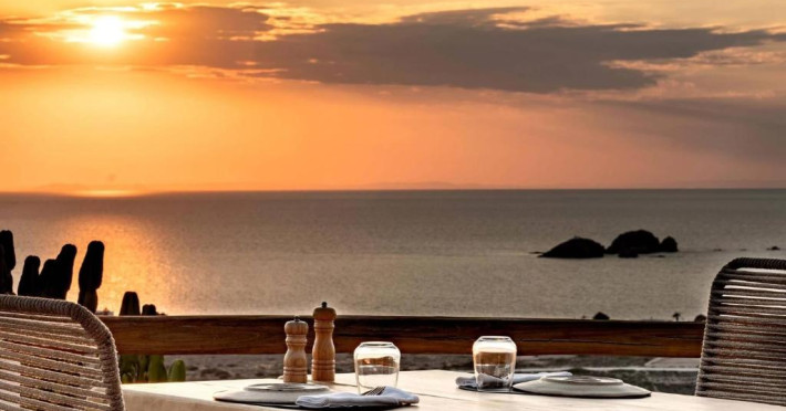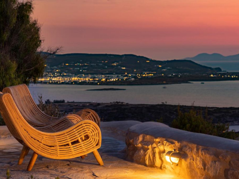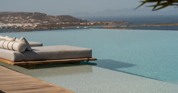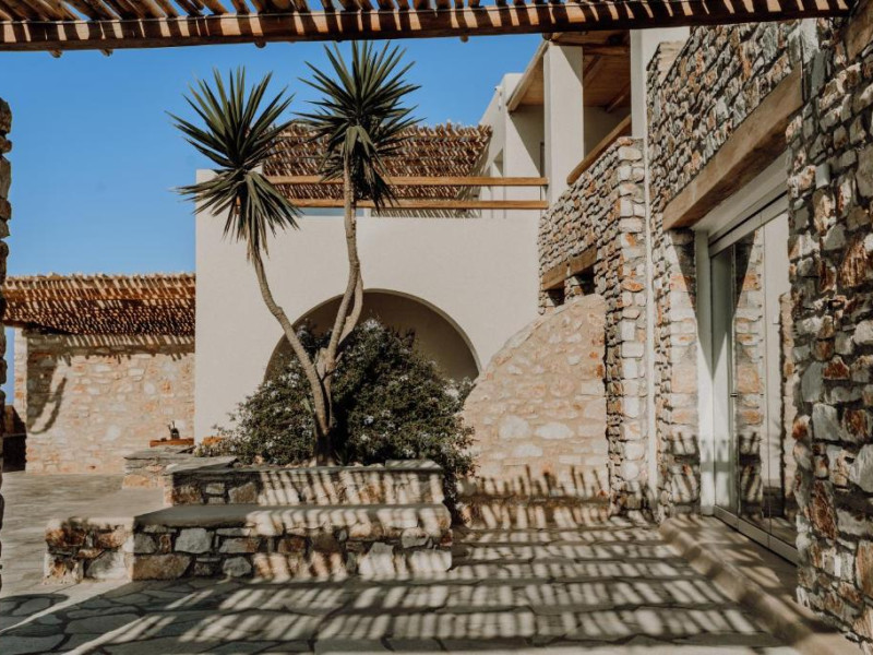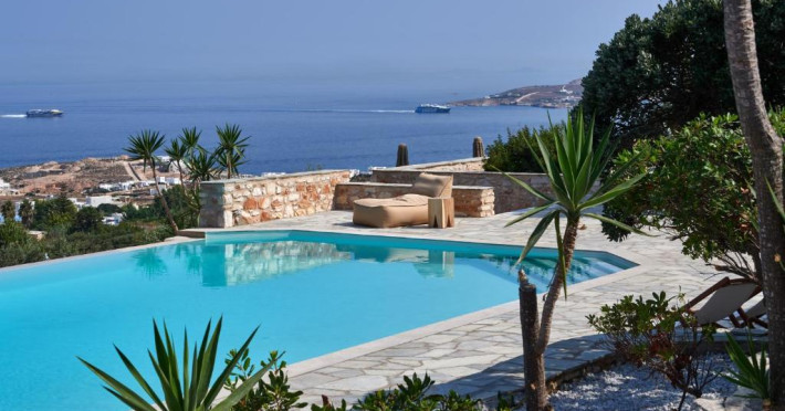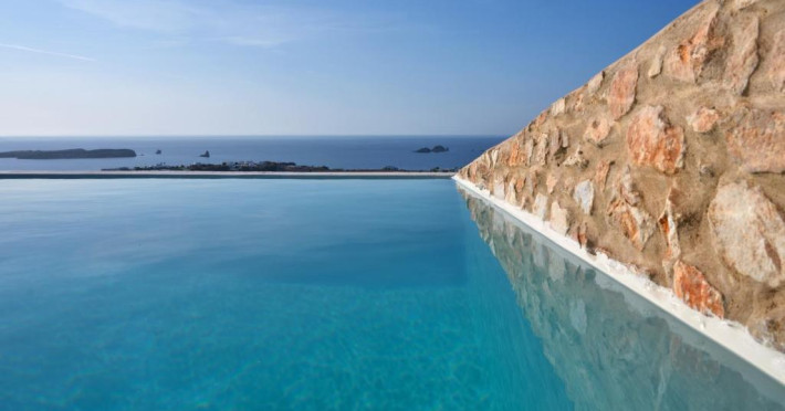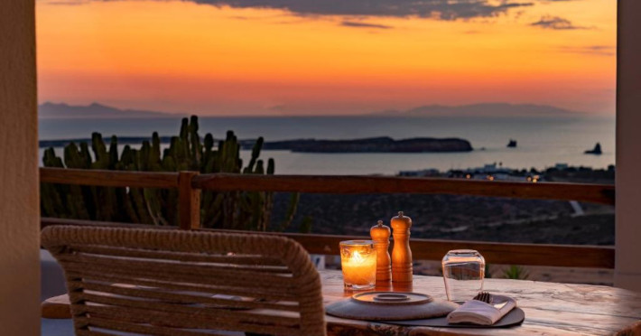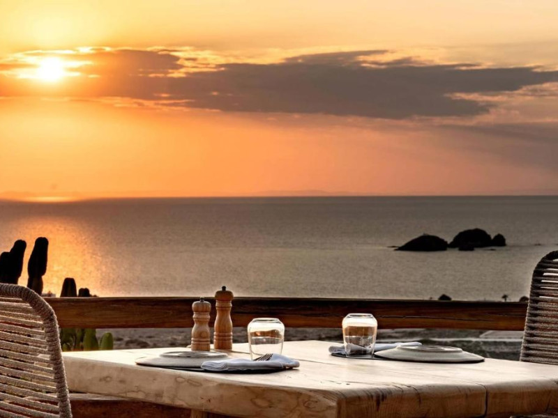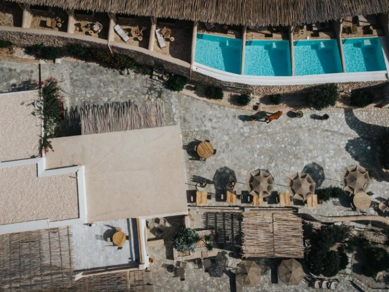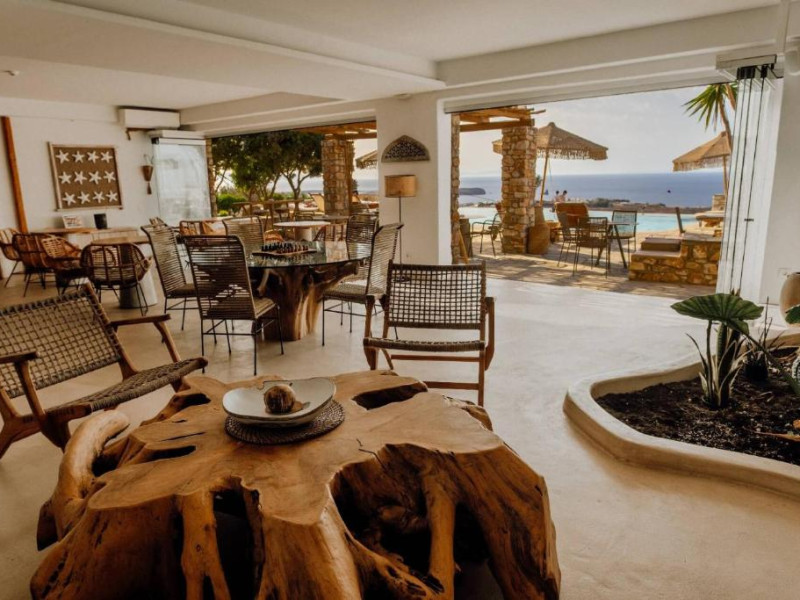 Camerele elegante beneficiază de terase private cu vedere spre Marea Egee, iar piscina infinity oferă un cadru perfect pentru momentele de relaxare. Restaurantul hotelului servește preparate mediteraneene rafinate, cu accent pe ingrediente locale și fructe de mare proaspete.