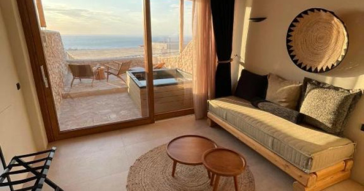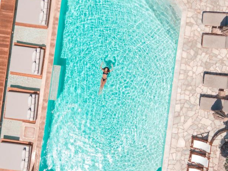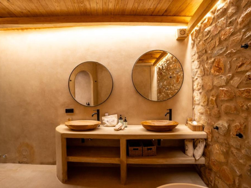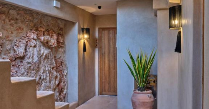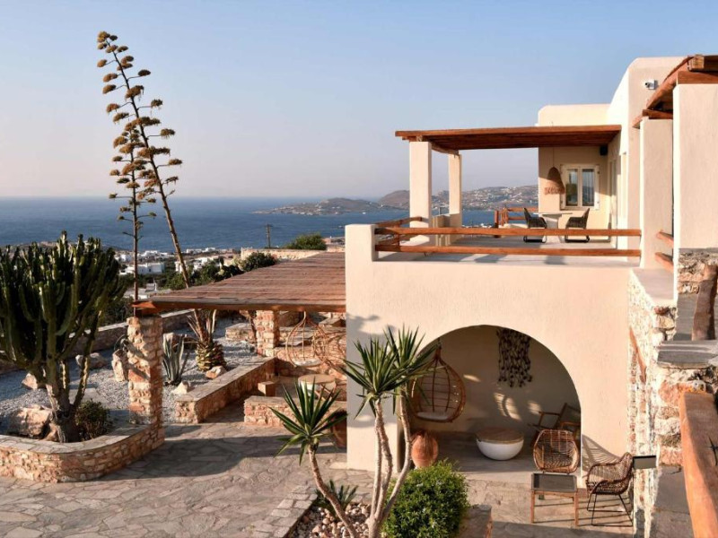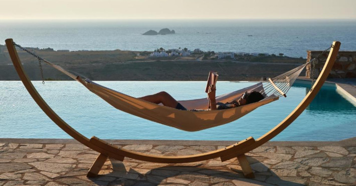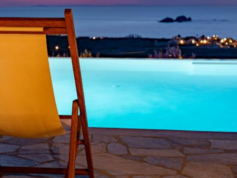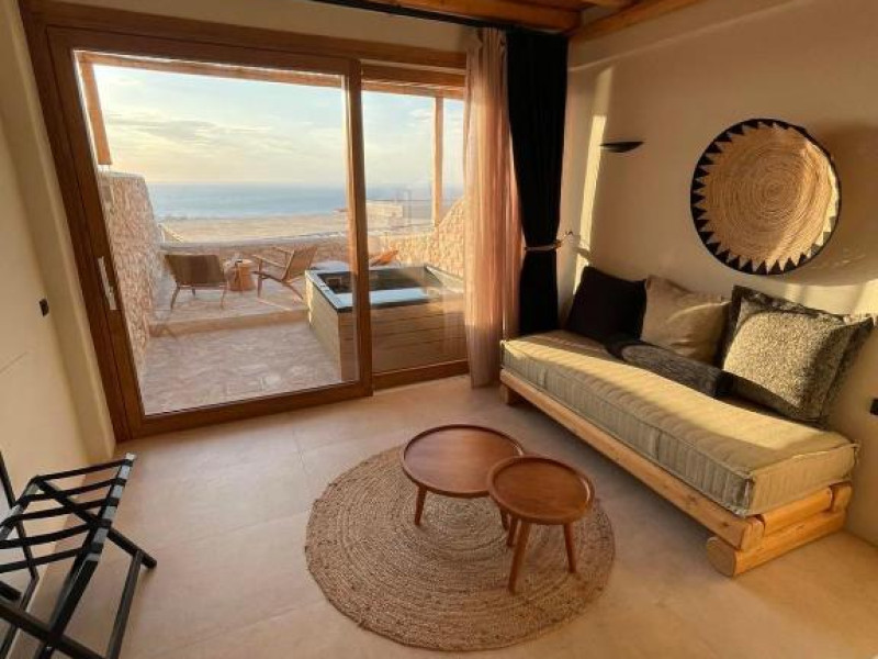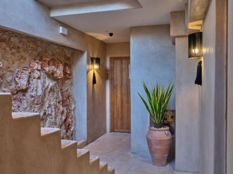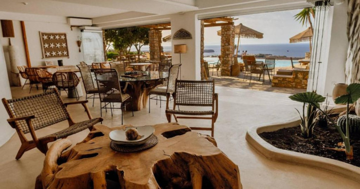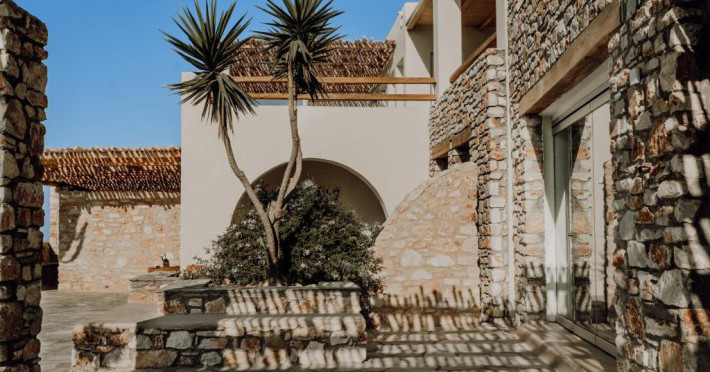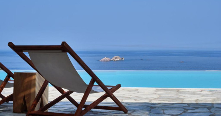 Camerele elegante beneficiază de terase private cu vedere spre Marea Egee, iar piscina infinity oferă un cadru perfect pentru momentele de relaxare. Restaurantul hotelului servește preparate mediteraneene rafinate, cu accent pe ingrediente locale și fructe de mare proaspete.