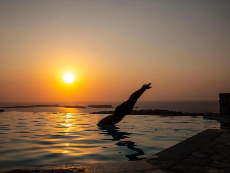 Oaspeții se pot bucura de centrul spa cu tratamente personalizate, sala de fitness și zonele de lounge in aer liber. Conceptul Adults Only asigură o atmosferă liniștită, ideală pentru cupluri și călători in căutarea unui refugiu romantic in Ciclade.