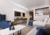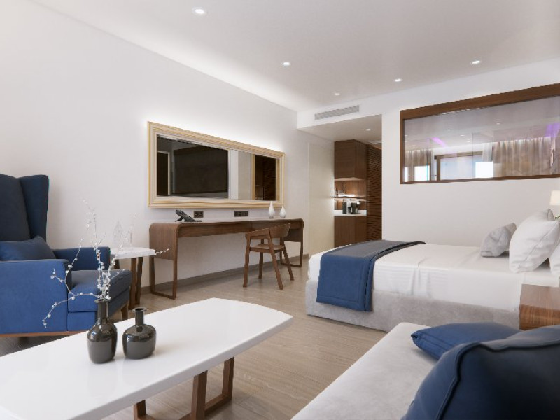 Descriere: Atlantica Caldera Palace este un resort de lux de 5 stele situat pe plaja cu nisip si pietris din Hersonissos, destinat familiilor si cuplurilor care doresc un sejur All Inclusive deosebit. Resortul ofera o gama variata de camere si suite elegante, inclusiv optiuni cu acces direct la piscina sau piscina privata pentru un plus de confort si intimitate. Facilitatile moderne includ patru piscine exterioare, restaurante si baruri cu preparate internationale si tematice, centre de sport si divertisment, precum si un centru Spa complet cu sala de fitness gratuita. Copiii si adolescentii beneficiaza de zone dedicate, programe de animatie si piscine cu tobogane, iar oaspetii adulti se pot relaxa in spa sau pe plaja, savurand atmosfera luxoasa a resortului. Localizare: Resortul Atlantica Caldera Palace se afla direct pe plaja din Hersonissos, o statiune vibranta situata pe coasta de nord a insulei Creta. Locatia sa permite o combinatie ideala intre relaxare pe malul marii si acces facil la activitati locale, restaurante, magazine si atractii turistice. Aeroportul International Heraklion se afla la aproximativ 23 km, iar centrul orasului Heraklion poate fi atins rapid pentru excursii culturale sau cumparaturi. Statiunea Hersonissos este renumita pentru viata sa de noapte, restaurantele traditionale cretane, cafenelele si sporturile nautice, oferind o combinatie perfecta intre liniste, divertisment si activitati recreative. Dotari camera: Camerele si suitele sunt echipate cu aer conditionat individual, Wi-Fi gratuit, TV satelit, telefon, seif gratuit, minibar cu apa, bere si sucuri, facilitati pentru cafea si ceai, baie cu cada sau dus, uscator de par, oglinda cosmetica, halate si papuci, balcon sau terasa. Suitele Swim Up si Private Pool includ acces la piscina comuna sau privata si optiuni suplimentare precum meniu de perne si aparat de espresso (la cerere). Facilitati hotel: Resortul ofera patru piscine exterioare, sezlonguri si umbrele gratuite la piscina si pe plaja, terenuri sportive (tenis, fotbal, baschet, volei) mini golf, sala de fitness gratuita, centru Spa cu sauna, baie de aburi, piscina interioara incalzita, masaje si tratamente de infrumusetare (contra cost), sala de conferinte, boutique si mini market (contra cost). Restaurantele si barurile includ restaurant principal tip bufet si restaurante a la carte tematice, precum Tex Mex, Thai, taverna Oregano si Basilico (unele contra cost), precum si baruri si cafenele la piscina si in lobby. Programul All Inclusive include bauturi locale, sucuri, cafea si ceai, gustari si inghetata. Site web: https://www.nanaprincess.gr/