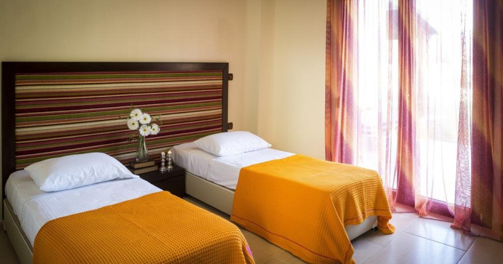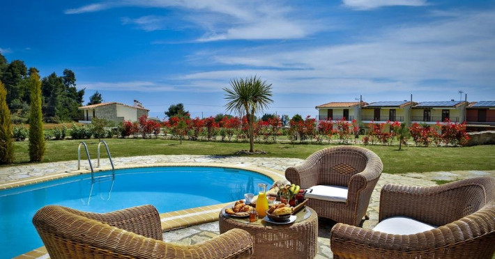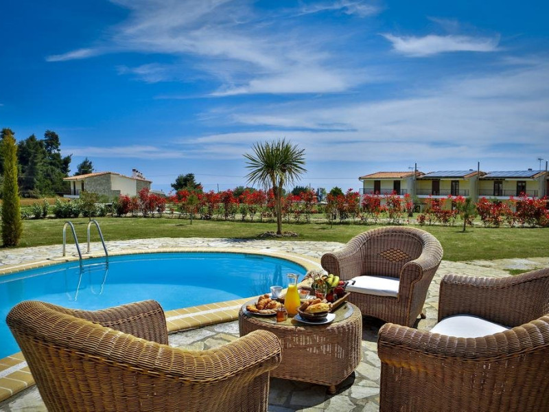 Localizare: Nefeli Luxury Villas este un complex complet organizat de vile, apartamente si bungalouri , care ofera servicii de cazare de inalta calitate pentru intreaga familie. Este situat in Halkidiki, in peninsula Kassandra, langa satul Nea Skioni. Chiar in fata complexului cu gradinile luxuriante se intinde o plaja frumoasa cu ape limpezi de cristal. Facilitati hotel: Nefeli Luxury Villas este formata din 6 cladiri individuale, fiecare incluzand 4 vile. Toate vilele ofera o vedere superba la mare si acces direct la plaja de nisip privata, dotata cu sezlonguri si umbrele. Complexul ofera si un minimarket, piscina, pool bar. Facilitati camere: Complexul ofera diferite variante de cazare: camera deluxe garden bungalow (65 mp), gradina 50mp - este decorata traditional, dormitor, living cu chicineta, TV, aer conditionat) //Bungalow cu 2 dormitoare// suite cu 2 dormitoare si 3 vile cu diferite capacitati.Accepta animale de companie de talie mica, cu pre-rezervare, contra cost - 100 euro/animal/sejur - se achita la recpetie in momentul cazari. Website: www.nefeliluxuryvillas.com