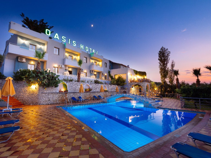 Localizare: Hotelul este localizat intr-o zona linistita, pe un deal din Scaleta, la doar 400 m de plaja, 12 km de Rethymno si aproximativ 74 km de aeroportul din Chania. Dotari camere: aer conditionat (contra cost), acces internet WiFi (gratuit), telefon, seif (contra cost), televizor, frigider, uscator de par, balcon/terasa. Facilitati hotel: restaurant, bar, acces WiFi (gratuit), piscina, sezlonguri si umbrele (gratuite la piscina si contra cost pe plaja), prosoape de plaja (cu depozit), piscina pentru copii, tenis de masa, darts, biliard (contra cost). Web site: www.oasis-hotel.org Pentru anumite facilitati din hotel sau din camera, hotelierul poate solicita taxe suplimentare. In momentul sosirii la hotel solicitati receptionerului sa va informeze cu exactitate asupra lor. Taxa de statiune obligatorie - se plateste la receptie. .