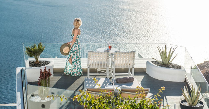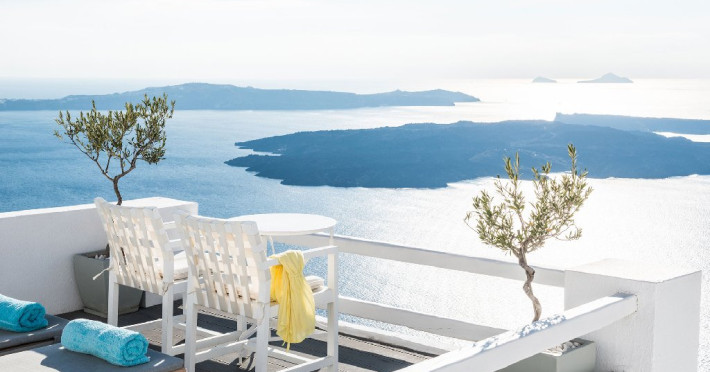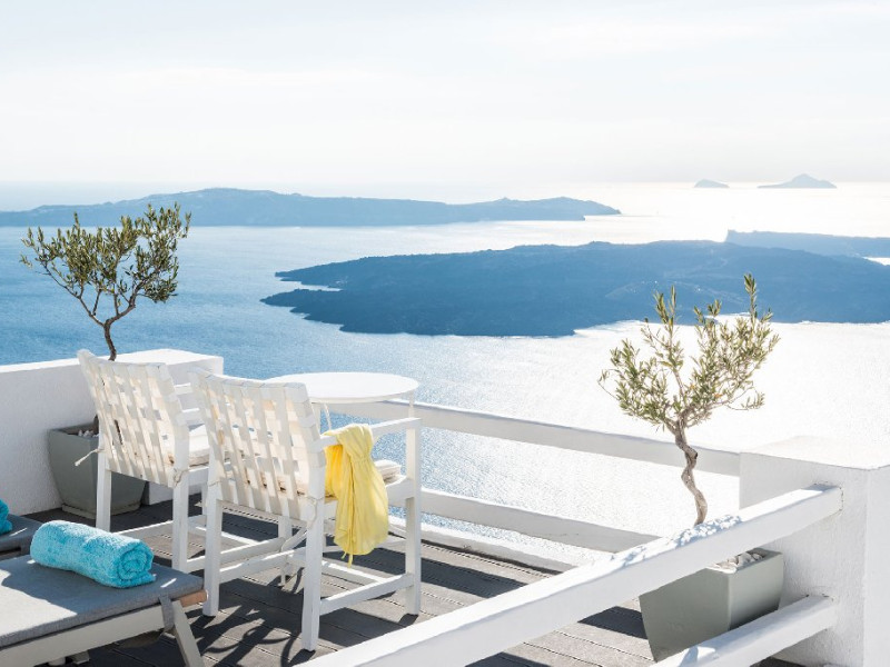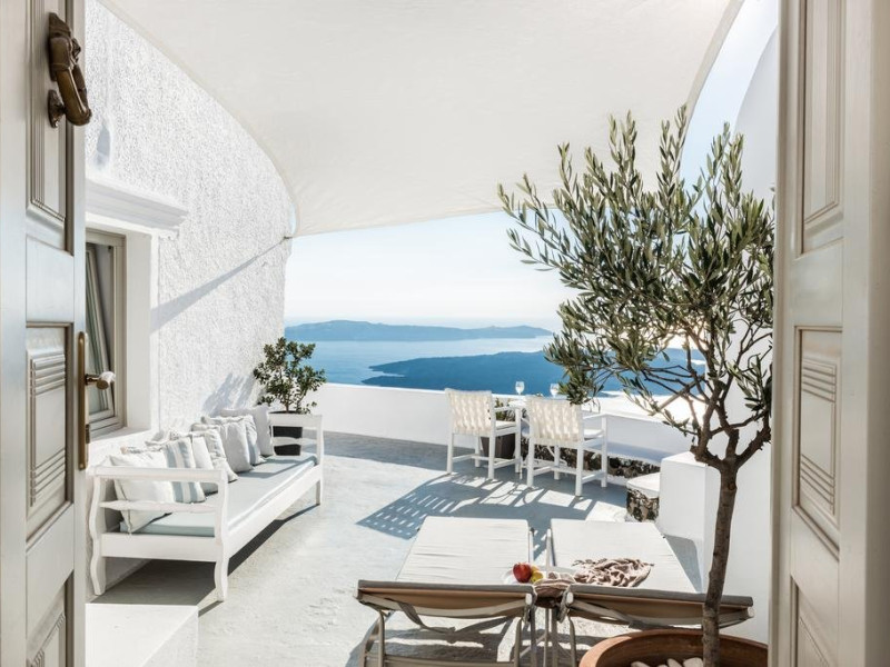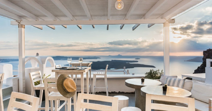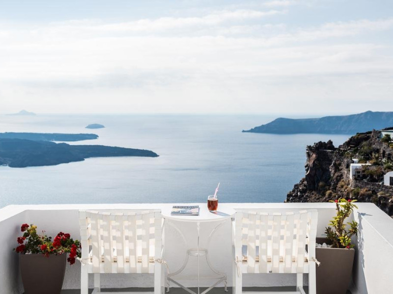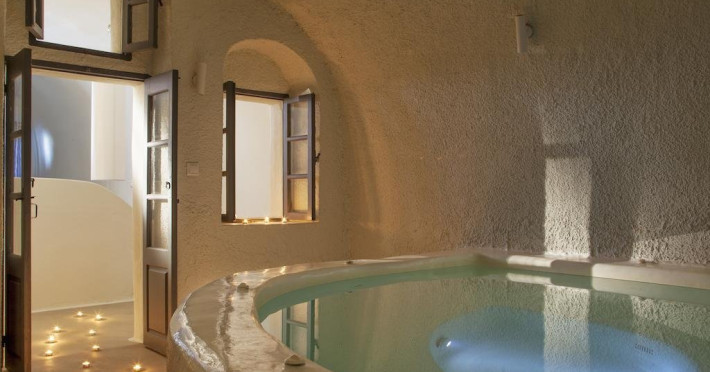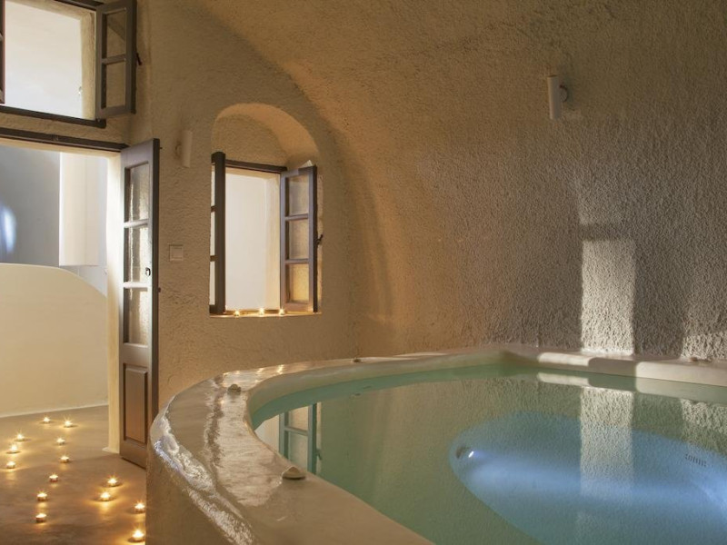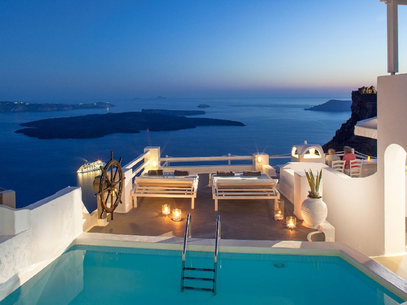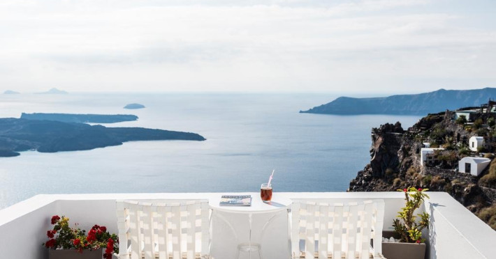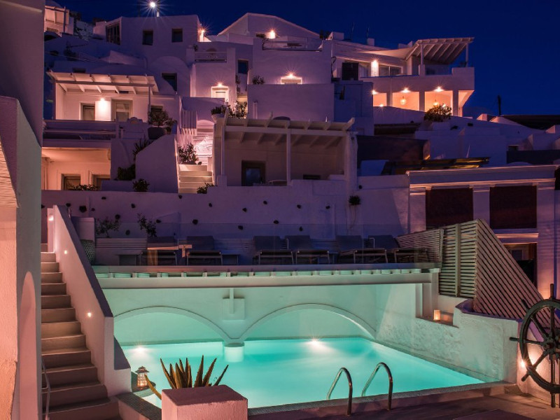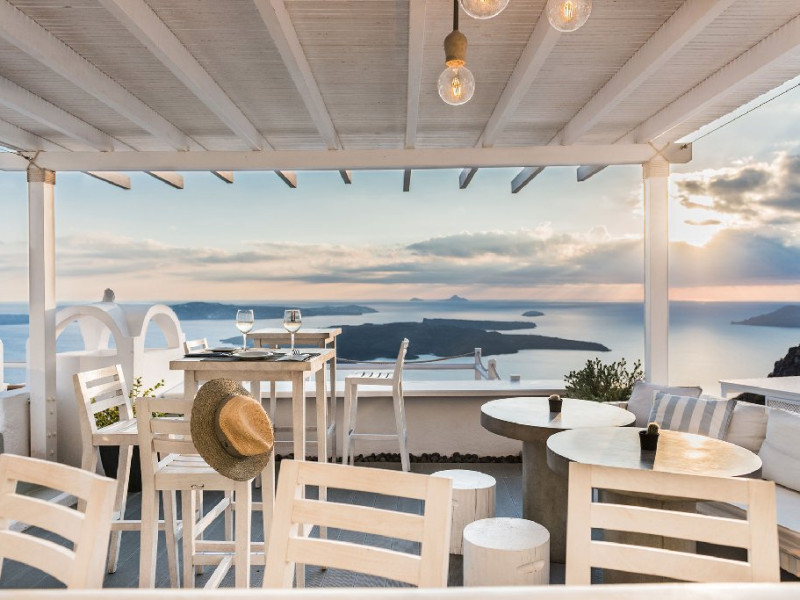 Localizare HOTEL ON THE ROCKS: Hotelul este ideal situat in Imerovigli, la 2 km de capitala insulei, Fira. La doar 200 m distanta se gasesc taverne si restaurante, iar statia de autobuz se afla la 30 m de hotel. Oia se afla la distanta de 10 km.