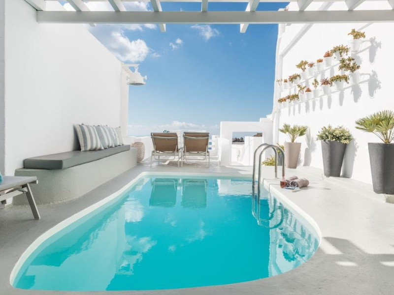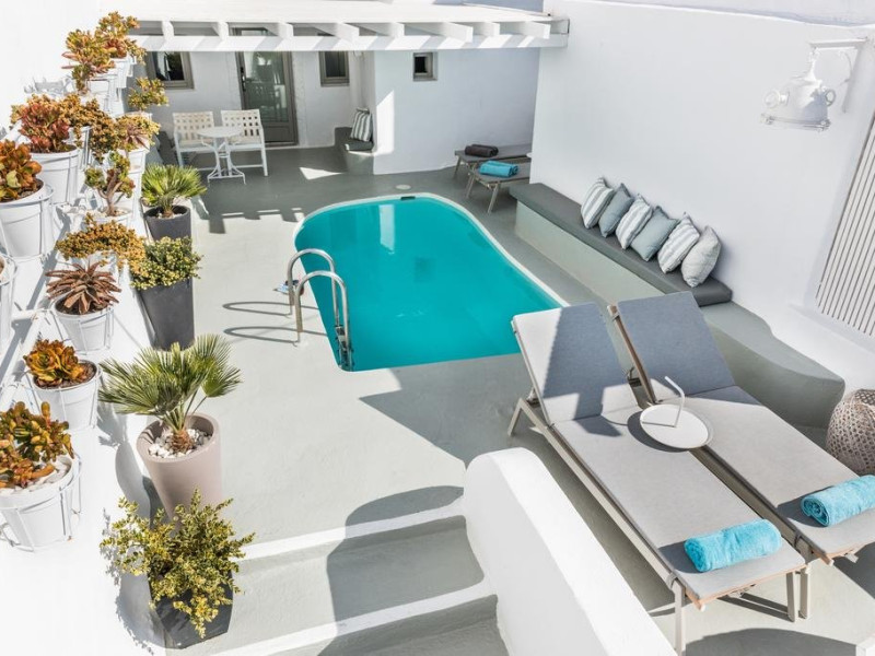 Descriere HOTEL ON THE ROCKS: Hotelul On the Rocks ofera camere decorate in stil romantic. Hotelul este construit in stilul traditional cicladic si pune la dispozitia oaspetilor facilitati spa.