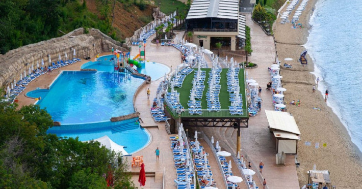 Localizare: Paradise Beach Residence este un sat de vacanta situat intr-un golf spectaculos din statiunea Sveti Vlas. Satul de vacanta se afla la 6 km spre nord de statiunea Sunny Beach. Facilitati hotel: Hotelul pune la dispozitia clientilor: piscina, spa si centru de wellness (contra cost), sala de fitness (contra cost), masaj (contra cost), sauna (contra cost), baie cu aburi (contra cost), restaurante, bar, parcare, zona de plaja private, camera cu sare (contra cost), activitati: sala de jocuri cu bowling, biliard, darts, PlayStation-uri, tenis de masa, jocuri arcade (contra cost). Dotari camera: Camerele sunt dotate cu aer conditionat, TV, Wi-Fi, minibar, baie private, uscator de par, balcon, seif, accesul animalelor (pana la 3kg), halat de baie. Nota informativa: Pentru anumite facilitati din hotel sau din camera, hotelierul poate solicita taxe suplimentare. In momentul sosirii la hotel solicitati receptionerului sa va informeze cu exactitate asupra lor. Website: https://paradisebeach.bg/