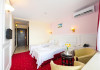 Camere: Hotelul dispune de 380 locuri de cazare complet renovate. Camerele duble, twin si apartamentele puse la dispozitia turistilor de Hotel Parc Mamaia acopera o gama variata de gusturi si sunt concepute astfel incat sa se potriveasca tuturor categoriilor de clienti care apeleaza la serviciile hotelului - Camera dubla: Este camera cu un pat matrimonial pentru maxim doua persoane si un copil cu un pat pliant suplimentar. Poate avea vedere laterala la mare sau vedere frontala la mare. - Camera twin: Este camera cu doua paturi de o persoana pentru maxim doua persoane si un copil cu un pat pliant suplimentar. Poate avea vedere laterala la mare sau vedere frontala la mare. - Apartamente: Apartamentul este compus din doua camere (living si dormitor). Living-ul are in dotare o canapea extensibila cu saltea Relaxa pentru maxim doua persoane. Dormitorul are in dotare pat matrimonial pentru maxim doua persoane. La cerere se poate monta un pat pliant suplimentar pentru a cincea persoana. Toate apartamentele dispun de o vedere superba la Marea Neagra. Camerele din incinta Hotel Parc Mamaia sunt dotate cu minibar, TV LED si cablu tv, aer conditionat, telefon, baie propie cu dus, balcon mobilat, seif, uscator par, acces internet prin cablu, mocheta, acces pe baza de cartela, plasa de tantatri. Suprafata: 18 mp. Limitele maxime de cazare sunt: 1. Camera dubla - 2 adulti si un copil intre 0-12 ani; - 1 adulti si 2 copii intre 0-12 ani. 2. Apartament - 2 adulti si 3 copii intre 0-12 ani; - 3 adulti si 2 copii intre 0-12 ani; - 4 adulti si 1 copil intre 0-12 an
