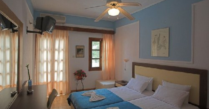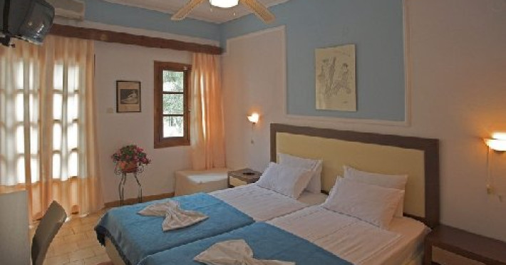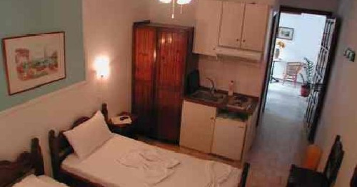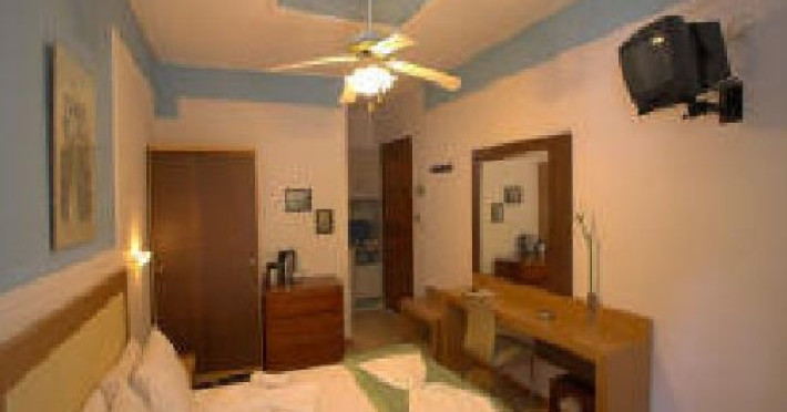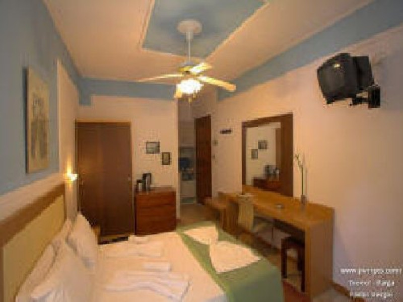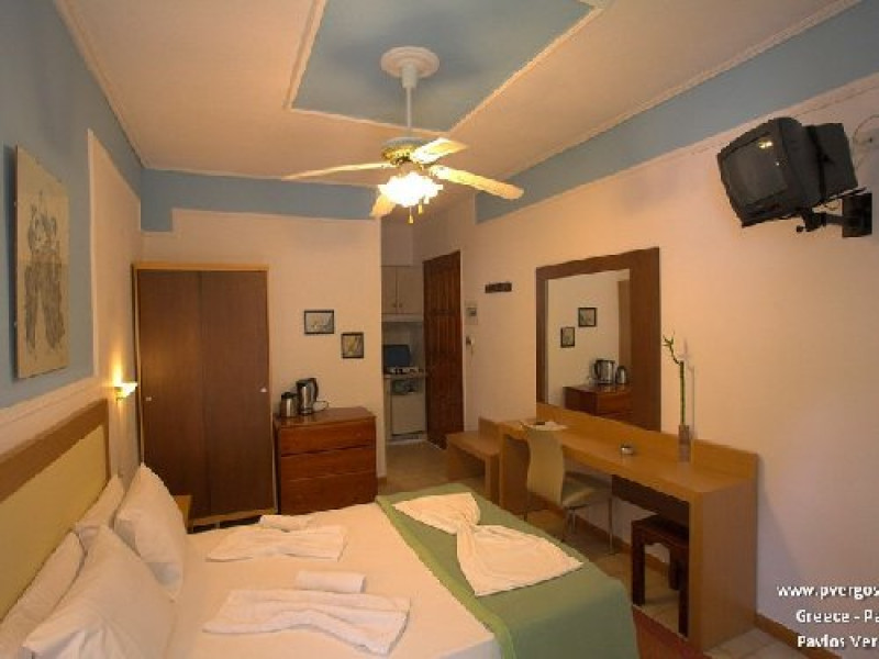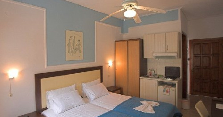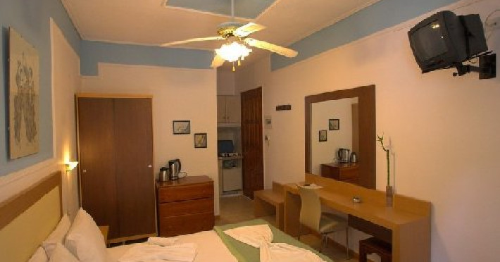 Dotari camere: Studiourile sunt compuse dintr-o combinatie de mobilier modern si facilitati (cum ar fi: seif, aer conditionat, TV satelit, ventilator, uscator de par, utilata) si un dram de elemente antice grecesti de stil.