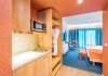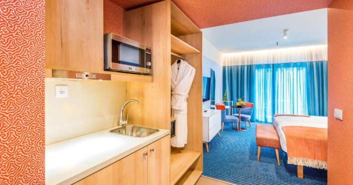 Descriere: Pestana Casino Studios este un hotel modern situat in centrul orasului Funchal, ideal pentru turistii care doresc sa fie aproape de principalele atractii ale orasului. Hotelul ofera studiouri confortabile, intr-un cadru prietenos si relaxant, potrivit atat pentru sejururi de vacanta, cat si pentru calatorii de afaceri. Atmosfera este una calma si primitoare, cu acces la facilitati de relaxare si divertisment in apropiere. Localizare: Hotelul se afla la doar cateva minute de mers pe jos de centrul Funchalului, unde se gasesc restaurante, magazine si puncte de interes cultural si social. Locatia permite acces facil la promenada de pe malul marii, portul din Funchal si principalele atractii turistice, precum si conexiuni bune catre restul insulei Madeira. Dotari camera: Studiourile sunt echipate cu aer conditionat, Wi-Fi gratuit, TV si seif. Fiecare unitate are balcon privat si chicineta cu frigider si cuptor cu microunde. Baia dispune de dus si uscator de par, iar unele camere sunt adaptate pentru persoane cu mobilitate redusa. Facilitatile permit un sejur confortabil pentru cupluri, familii sau calatori individuali. Facilitati hotel: Oaspetii au la dispozitie piscina exterioara, acces la piscina infinita de la hotelul Pestana Casino Park, spa, jacuzzi, sauna si baie turceasca, precum si teren de tenis si sala de jocuri. Alte servicii includ babysitting, spalatorie, coafor, room service, sali de conferinte si parcare (contra cost). Hotelul ofera camere pentru nefumatori si accepta animale de companie, asigurand confort si servicii complete pentru toate categoriile de oaspeti. Site web: https://www.pestana.com/en/hotel/pestana-casino-studios Nota informativa: Pentru anumite facilitati din hotel sau din camera, hotelierul poate solicita taxe suplimentare. In momentul sosirii la hotel solicitati receptionerului sa va informeze cu exactitate asupra lor. Taxa turistica obligatorie se plateste la receptie.