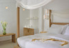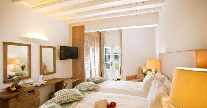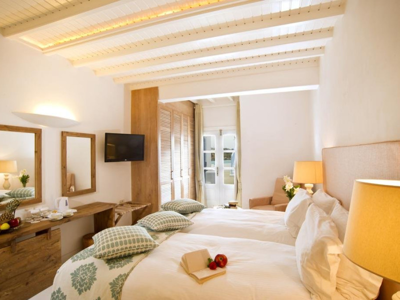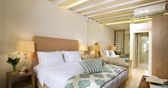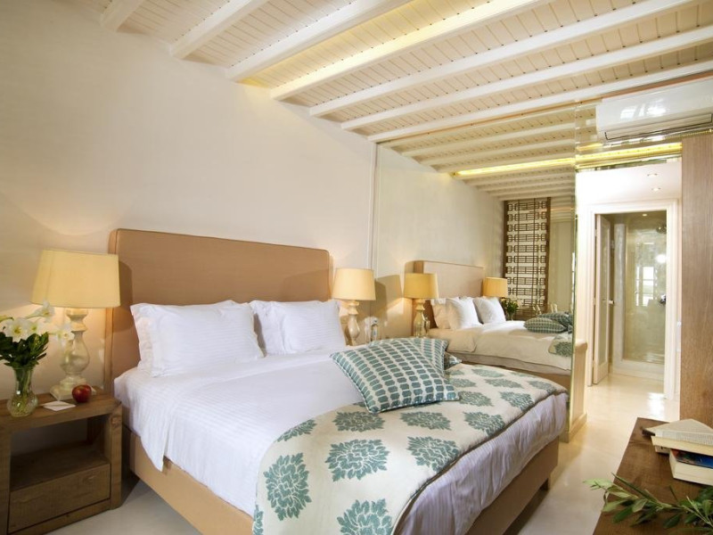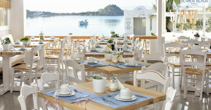 Descriere: Petinos Beach reprezinta o buna varianta de cazare atat pentru tinerii indragostiti cat si pentru familiile cu copii. Localizare: Hotelul are o pozitie privilegiata, pe plaja de nisip Platys Gialos. Distante: 10 m de statia de autobuz, 2 km de Paradise Beach, 4 km de Mykonos si 3 km de aeroport. Dotari camere: Camerele sunt luminoase, au plafon din lemn, mobilier clasic si sunt dotate cu aer conditionat, televizor cu ecran plat, mini-bar/frigider, telefon, seif, acces internet, uscator de par, halate si papuci de baie. Facilitati hotel: Petinos Beach pune la dispozitia oaspetilor sai un restaurant de tip bufet, bar, snack bar, meniuri cu diete speciale, terasa, piscina in aer liber, sala de fitness, masaj, internet wireless, parcare privata Alte servicii si facilitati: camera de bagaje, room service, sali de conferinta. Facilitati copii: servicii de baby sitting Clasificarea oficiala: 4* Web site: www.petinosbeach.gr