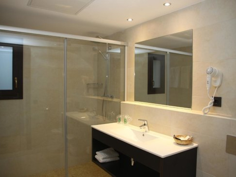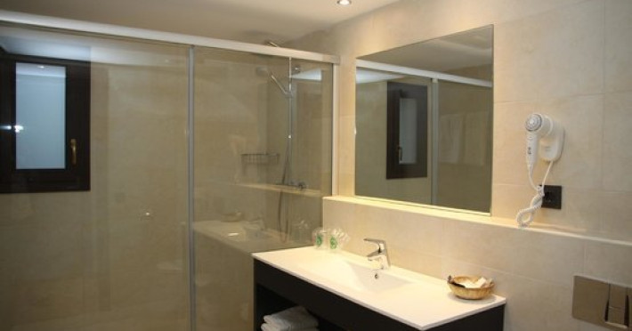Dotari camere PETIT PALAU - AD. ONLY: Hotelul are un total de 58 camere, din care 44 standard, 11 superior si 3 suite. 55 camere sunt pentru nefumatori. Camerele au o suprafata intre 15-20 mp. Acestea sunt dotate cu: izolare fonica, AC, incalzire, telefon, balcon, TV satelit, baie cu dus sau cada, uscator de par, prosoape, sampon si sapun, WIFI, minibar, detector de fum, safe (contra cost).