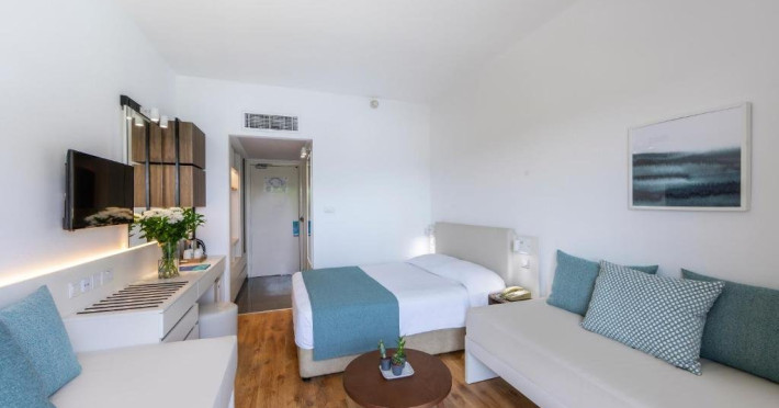 Dotari camera Toate camerele complexului sunt dotate cu TV cu ecran plat. Fiecare camera este dotata cu o baie privata cu articole de toaleta gratuite si uscator de par. Toate unitatile de la Louis Phaethon Beach au aer conditionat si birou. Facilitati hotel : Luis Phaethon are un parc acvatic care include o piscina in aer liber, o cada cu hidromasaj pentru 10 persoane, o piscina pentru copii cu 8 jocuri de apa si 3 tipuri de tobogane cu apa. Receptia este disponibila nonstop, iar WiFi este gratuit in zona holului. Web site: https://louisphaethonbeach.com/en/gallery.html