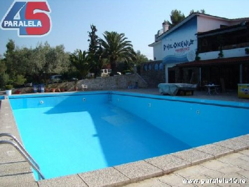Facilitati hotel: Restaurantul principal ofera specialitati grecesti, dar si internationale, bar la piscina, piscina exterioara, piscina pentru copii, plaja privata, sezlonguri si umbrelute pe plaja si la piscina, loc de joaca, sala de jocuri cu biliard, tenis de masa si jocuri video, inchiriere masini, seif (cu plata), internet (cu plata).
