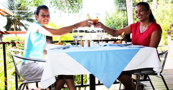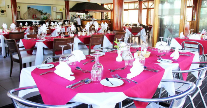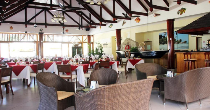 Oaspeții se pot bucura de preparate locale și internaționale pe tot parcursul zilei la restaurantul Pirogue.