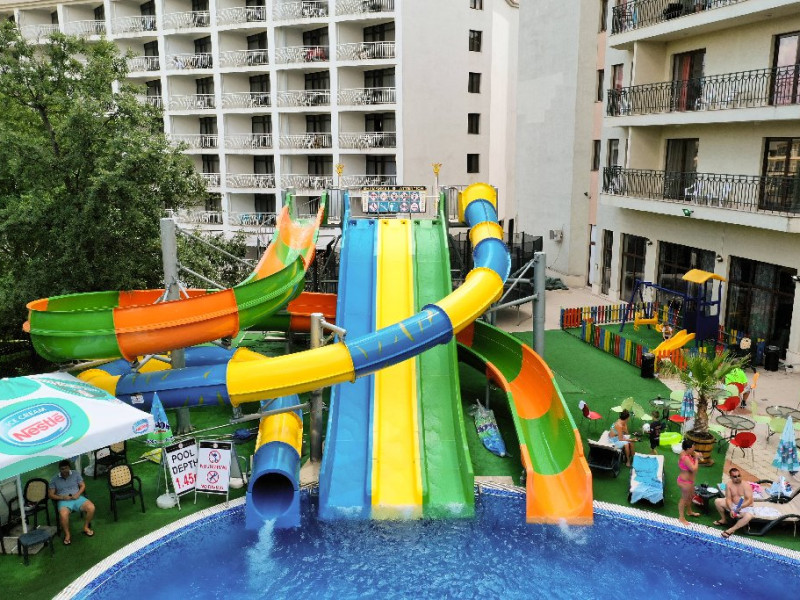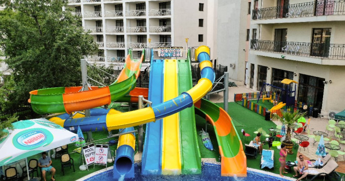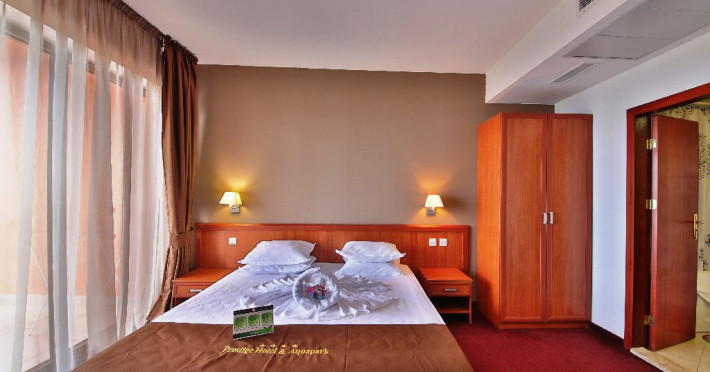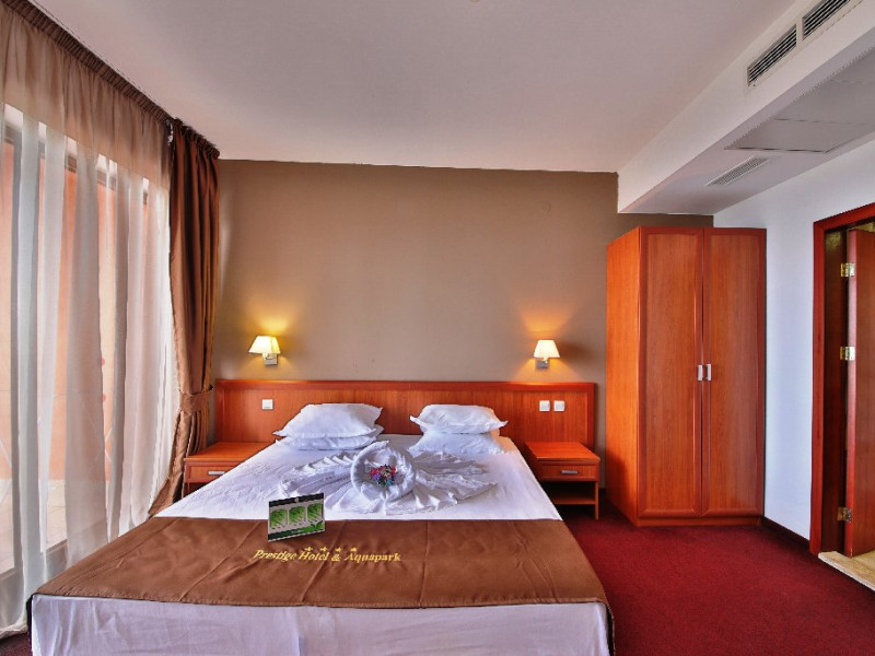 Localizare: Hotelul este situat la 350 de metri de plaja si centrul statiunii. Construit in 2005, renovat in perioada 2019-2022. Facilitati hotel: Hotelul pune la dispozitia clientilor restaurant, bar, piscina exterioara, sala de jocuri (contra cost), loc de joaca pentru copii, tobogane, parcare (contra cost), centru spa (contra cost), sala de fitness. Clientii hotelurilor Prestige Aquapark si Prestige Deluxe pot beneficia de intreaga gama de facilitati si servicii aflate in ambele hoteluri. Dotari camere: Camerele sunt dotate cu TV, telefon, wifi, seif, minibar, balcon, aer conditionat, baie cu cabina de dus sau cada si uscator de par. Animalele de companie nu sunt permise.Important: Plaja este departe de hotel si exista un autobuz de transfer. De mai multe ori pe zi (informatii afisate la receptie) clientii pot fi preluati de la hotel si transportati la plaja, iar acestia trebuie sa aleaga ora din timp. Pot folosi acest serviciu o singura data pe zi, la o ora fixa. Check-in dupa ora 15:00 Check-out pana la ora 11:00.