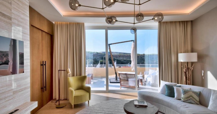 Suita cu vedere la mare - dormitor si living separat cu chicineta, vedere la mare