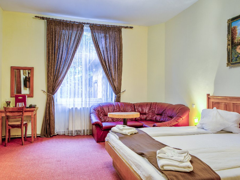 Elementele de lemn, mobilierul clasic in culori calde si decoratiunile inspirat alese creaza o atmosfera primitoare care va imbie de indata ce ne-ati trecut pragul.