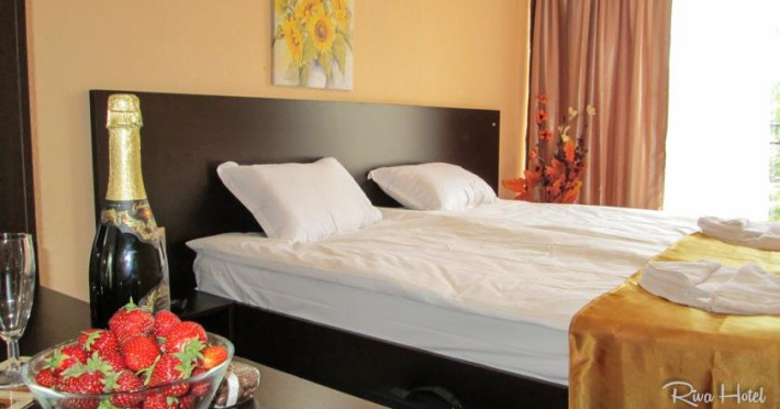 Localizare: Hotelul Riva este situat in Sunny Beach, la aproximativ 150 m de plaja Lai la 800 de metri de parcul acvatic Action. Hotelul este situat la mica distanta de mers pe jos de strada pietonala centrala. Facilitati cazare: Hotelul pune la dispozitia turistilor: piscina exterioara, 3 cladiri conectate, lift, seif la receptie (contra cost), bancomat, magazin, restaurant, gratar, lobby bar, bar la piscina, jocuri mecanice, biliard, tenis de masa, teren multifunctional, centru wellness, sauna, masaj, jacuzzi, parcare (contra cost- in limita locurilor disponibile). - Atentie, baile sunt foarte mici,