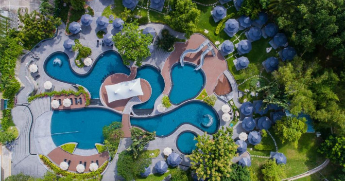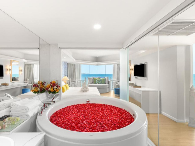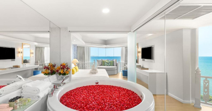 Vacanța luxoasa pe plajă vă așteaptă pe teritoriul exclusivist al Royal Cliff Beach Hotel Pattaya. Acest complex de 5 stele are camere cu vedere la munte sau la mare, 11 opțiuni de luat masa si mai multe piscine in aer liber, cu bar la nivelul apei.