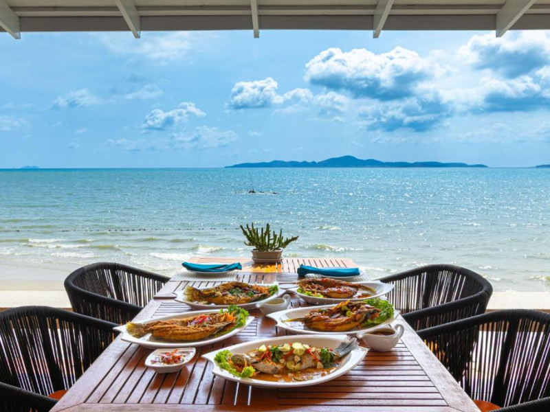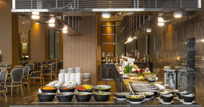 Panorama are vedere la Golful Siam si serveste un mic dejun bogat, tip bufet. Maharani si Chrysanthemum Palace oferă specialităti indiene si cantoneze. In plus, oaspetii pot savura preparate culinare delicioase la restaurantele premiate Caprice si Royal Grill.