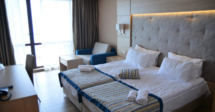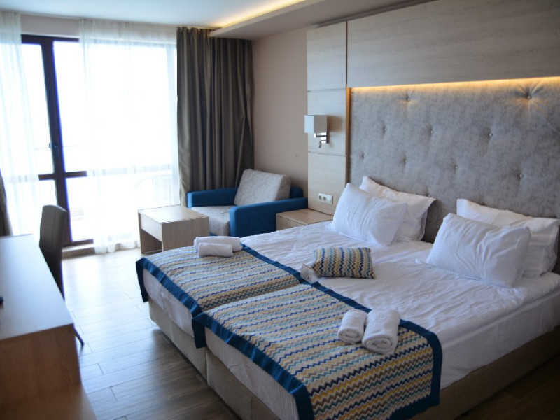 Hotelul este situat pe coasta Marii Negre, in orasul Kavarna. Royal Grand Hotel & SPA 4 * este deschis pe tot parcursul anului - iarna complexul este o destinatie preferata pentru cunoscatorii SPA ului si in timpul verii oaspetii au posibilitatea de a va bucura de piscina in aer liber, un bar pe plaja, o umbrela de plaja si un sezlong pe plaja in fata hotelului. Camerele elegante mobilate cu vedere la mare sau parc, restaurant, lobby bar, centru SPA, piscina interioara, fitness, sala de conferinte, plaja privata, teren de volei pe plaja, bar pe plaja, baza de sporturi de apa, magazin de suveniruri si cosmetice, coafor, manichiura. Restaurantul are o terasa cu vederi uimitoare. Royal Grand Hotel & SPA 4 * are urmatoarele tipuri de camere: Camere duble standard Camera dubla superioara Parc / vedere la mare Camere single Camere de familie Apartamente cu un dormitor Facilitati camera Camerele sunt mobilate confortabil si dotate la cele mai inalte standarde. Toate camerele sunt dotate cu aer conditionat, TV LCD, TV prin satelit, canapea, minibar, terasa cu vedere la mare sau parc, WI-FI, seif. Doua paturi separate sau un dormitor, garderoba, dressing table cu oglinda, baie - cabina de dus, uscator de par.